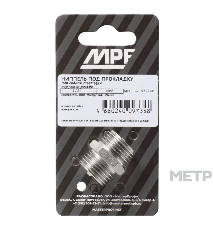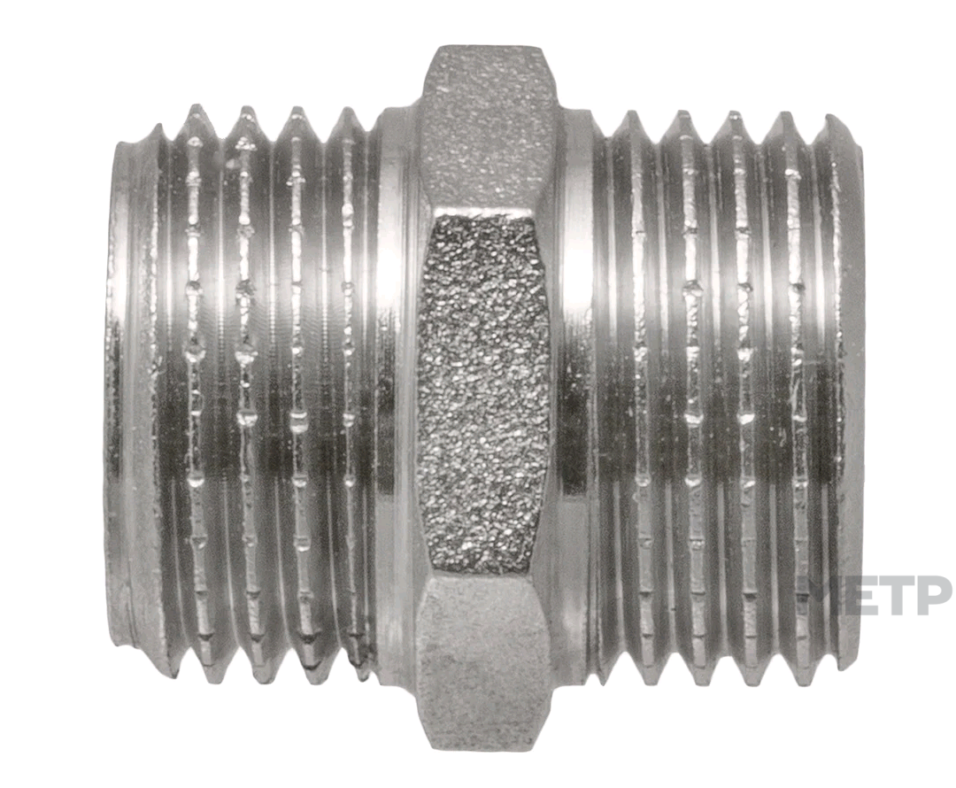 Особенностью данного ниппеля является плоскость с торца фитинга. Это дает возможность подсоединения других элементов трубопровода используя прокладку в виде уплотнения.