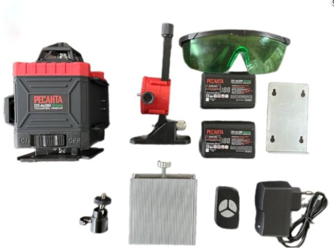 Построитель лазерный ПЛ-4Х360 Green Ресанта - измерительный прибор, который позволяет выполнять измерительные задачи в строительстве: построение горизонтальной и вертикальной плоскостей для выверки и контроля правильности взаимного расположения плоскостей, установки угла в 90 градусов между плоскостями. Прибор позволяет контролировать неровность поверхности относительно горизонта и перпендикулярной плоскости.