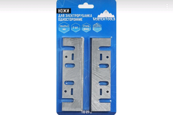 Нож 110х29х3мм для электрорубанков односторонние 2шт для электрорубанка изготовлены из легированной быстрорежущей стали Mn65. Предназначены для работ по мягкой и твердой древесине.