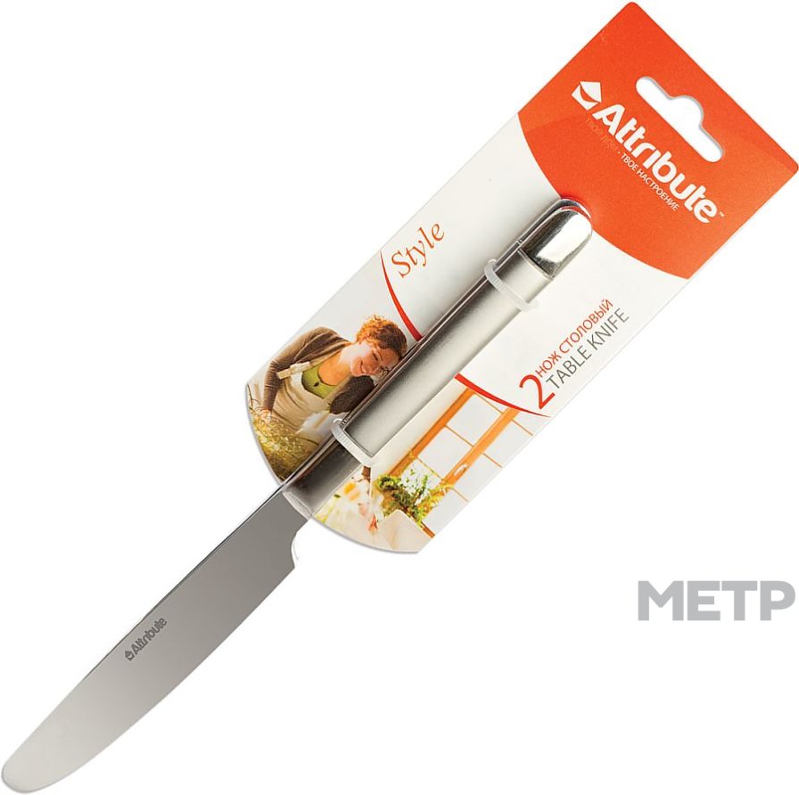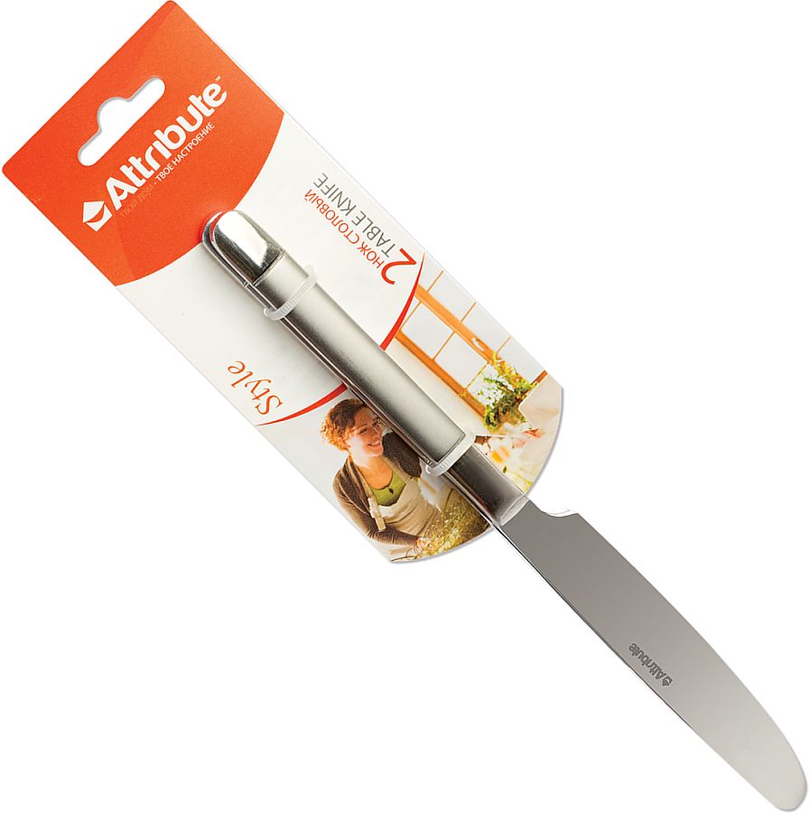 Нож столовый Attribute Style 2 шт. изготовлен из нержавеющей стали высокого качества. Длина изделия составляет 23,2 см. Такой нож точно пригодиться вам во время приготовления блюд или сервировки стола. Изделие предназначено для простого очищения губкой или же мойке в посудомоечной машине. Страна-производитель Китай.