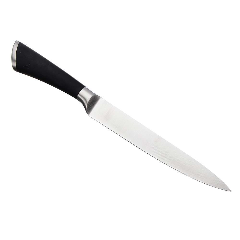 Нож универсальный SATOSHI Акита 20 см - удобное кухонное приспособление для нарезки, шинкования и измельчения. Рабочая часть сделана из нержавеющей стали, а ручка из пластика. Изделие комфортно держать в руке. Ручка имеет упор для пальцев для безопасного использования.