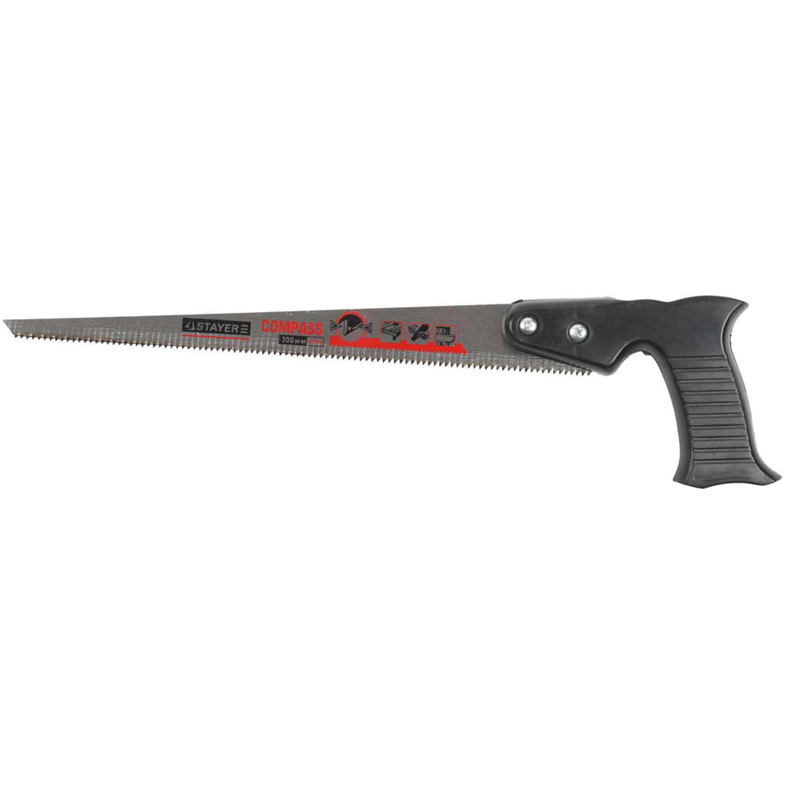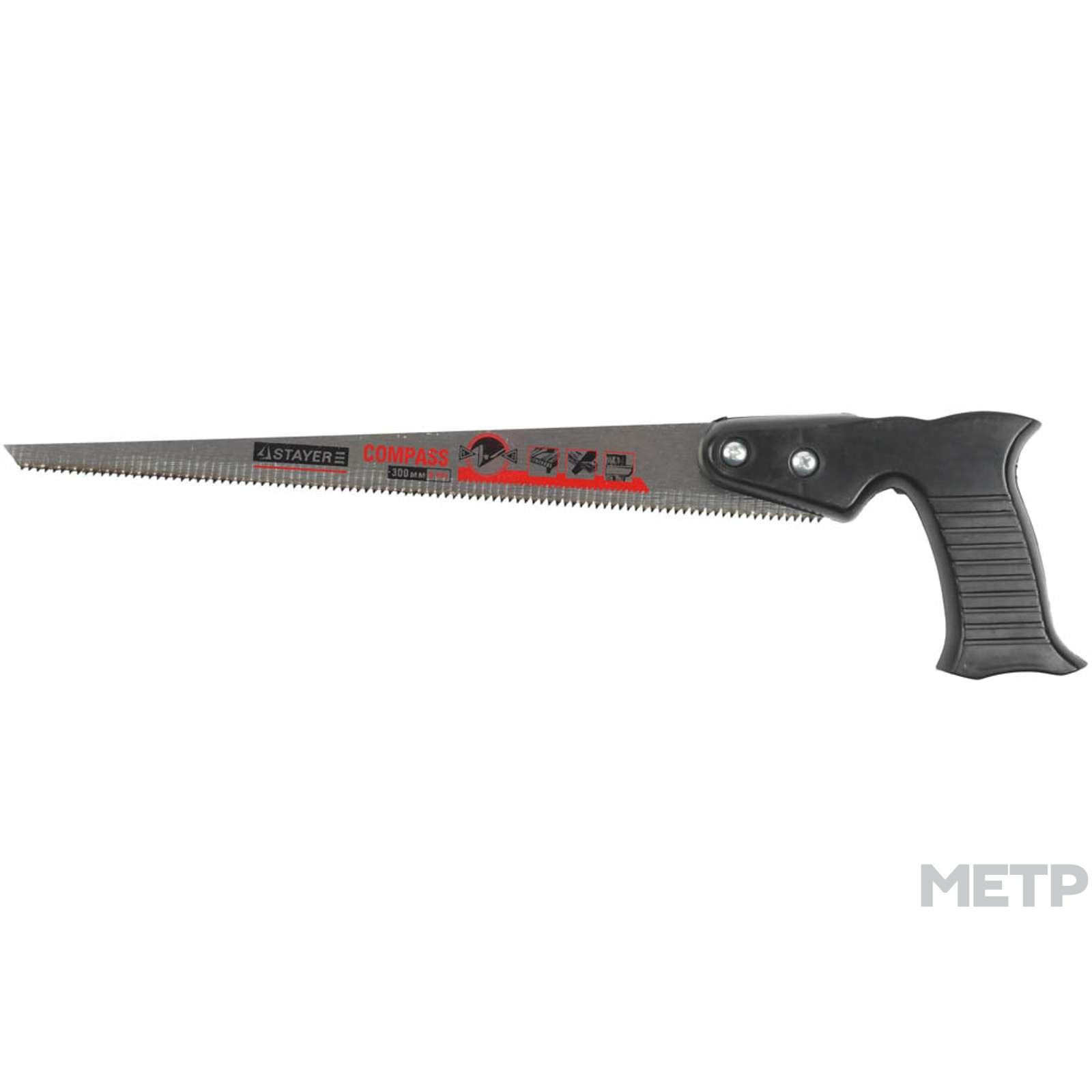 Ножовка выкружная по дереву 300 мм STAYER Compass, рукоять пластик, восемь зубьев на дюйм с шагом три. Данная модель рассчитана на длительное использование в условиях домашнего ремонта, отвечает российским стандартам качества и современным требованиям к безопасности, удобна в эксплуатации.