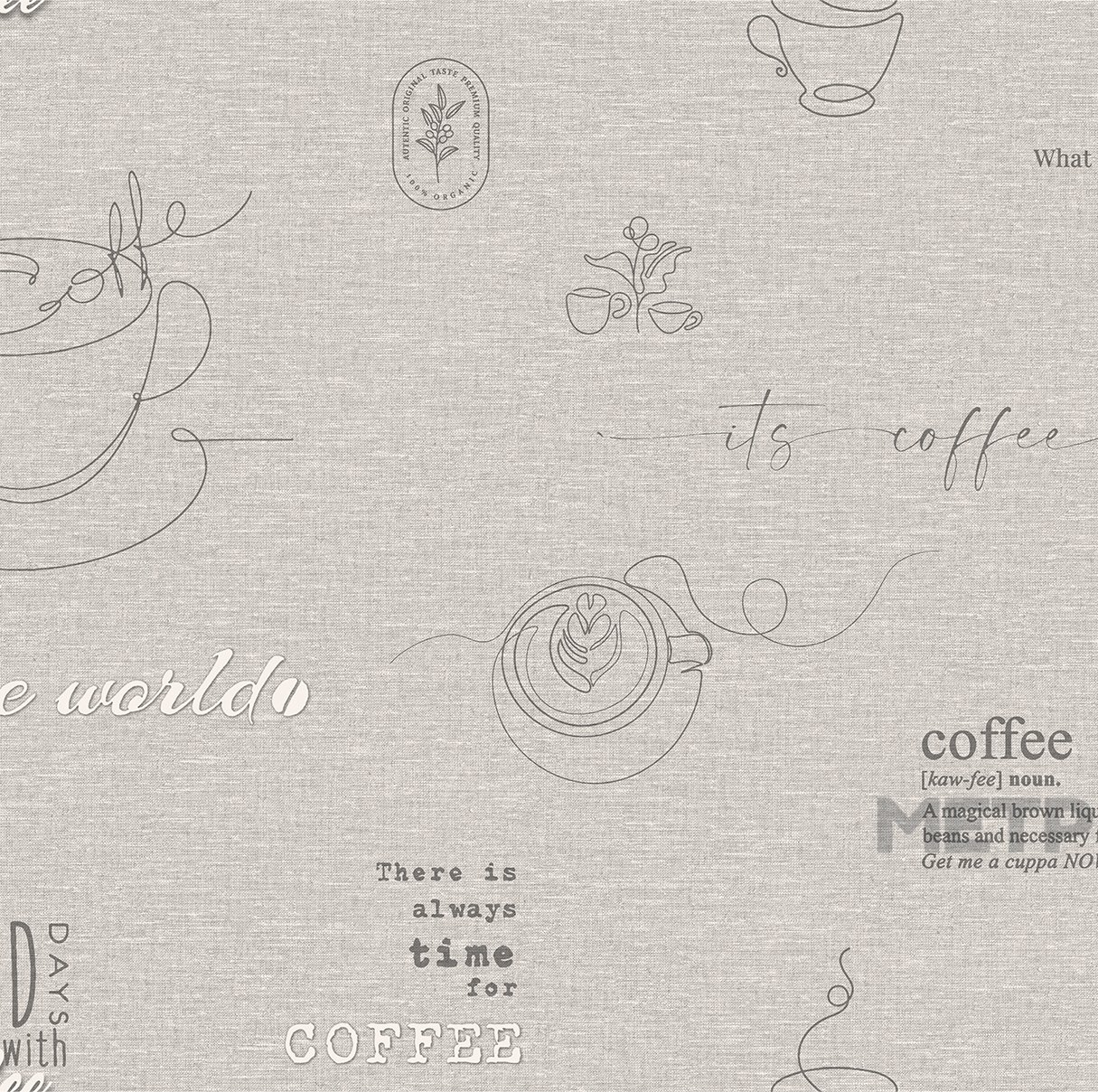 Обои Ateliero Cafe 589698 представляют собой стильное отражение утреннего ритуала, когда аромат только что сваренного кофе наполняет пространство теплом и вдохновением. На фоне мягкой текстильной текстуры изображены графические силуэты чашек, кофейные листья и каллиграфические надписи, создающие атмосферу уюта и непринужденного общения. Обои выполнены в нейтральной природной палитре с оттенками серого, льняного и теплого бежевого, что делает их идеальными для интерьеров сдержанного и сбалансированного дизайна. Элементы принта выглядят легкими и ненавязчивыми, как будто это наброски в блокноте бариста. Обои из коллекции Café прекрасно подойдут для обеденной зоны, кухни, кафе, пекарни или домашней столовой. Они создадут уютную и «вкусную» атмосферу, идеально подходя для тех, кто хочет превратить интерьер в пространство отдыха и вдохновения. Ощутите тепло и комфорт вместе с коллекцией Café от ТМ Ateliero!