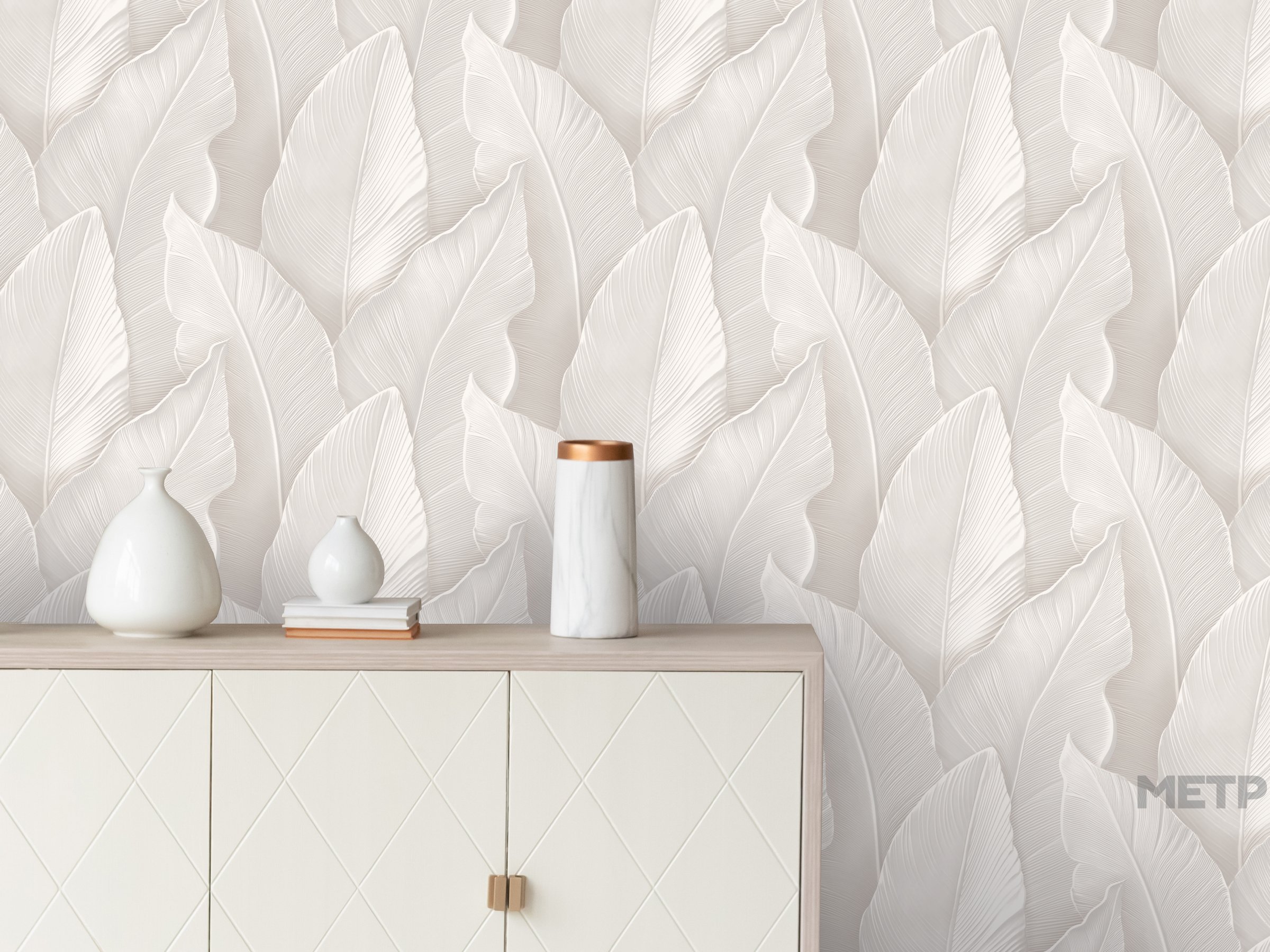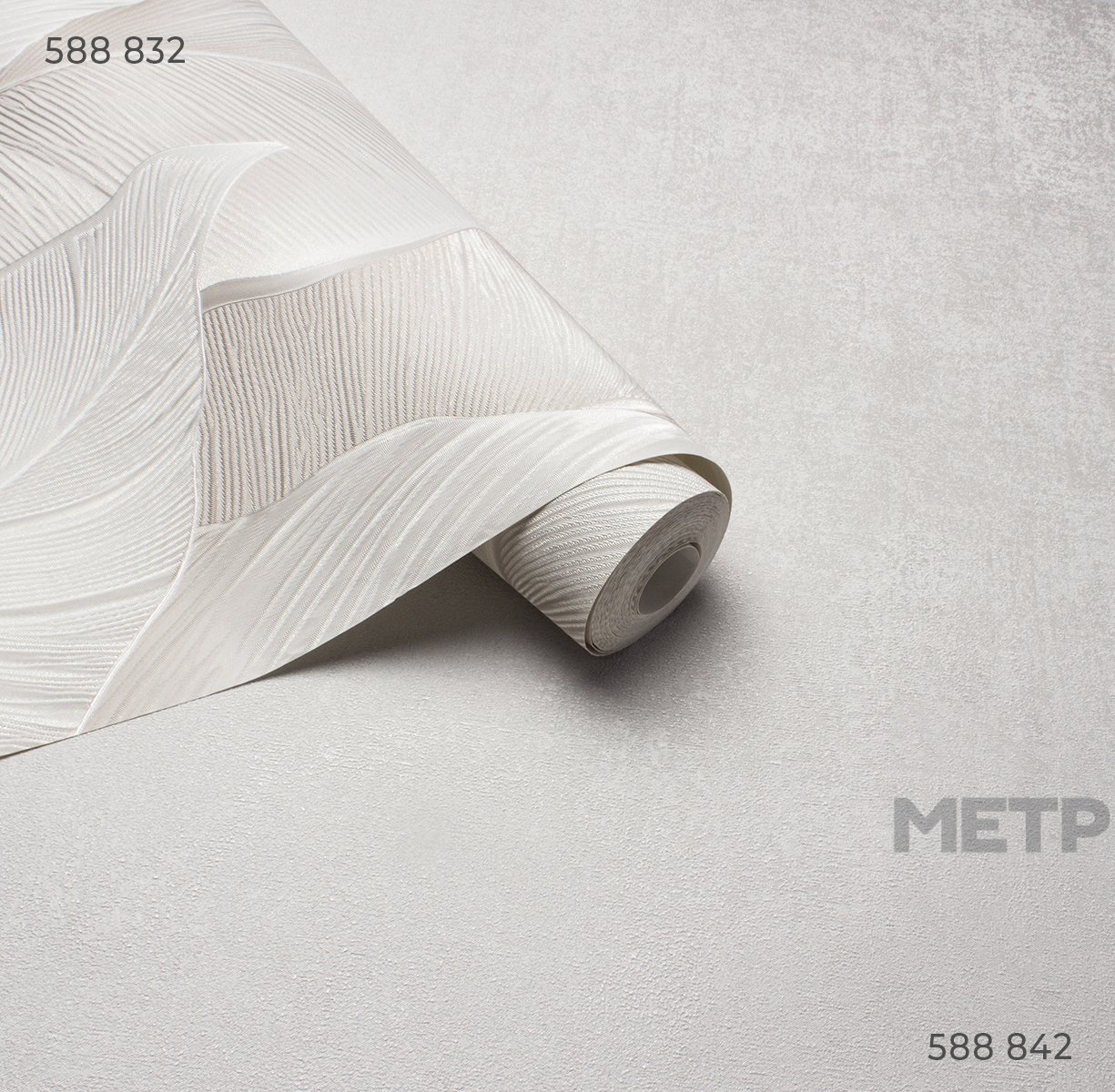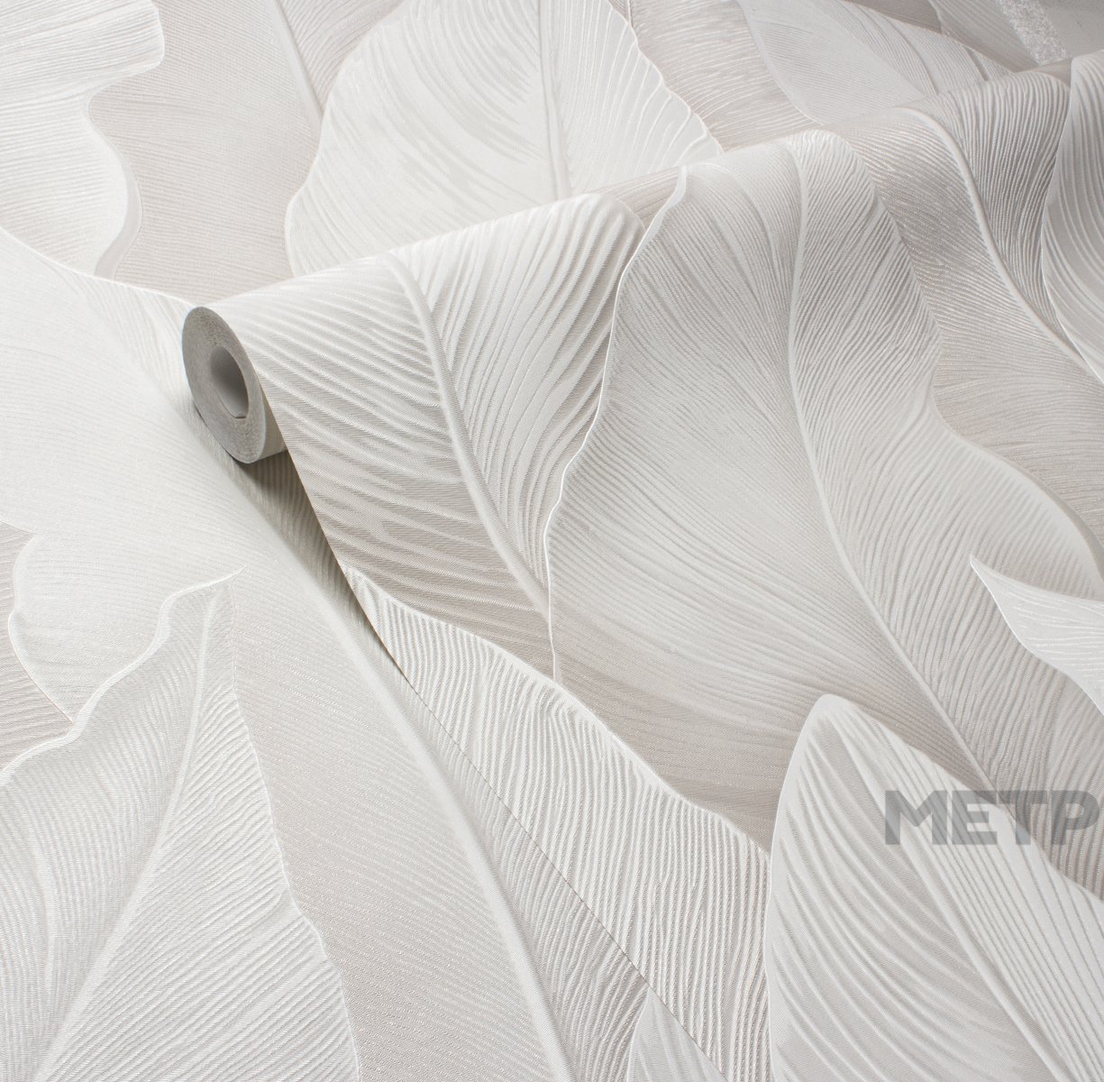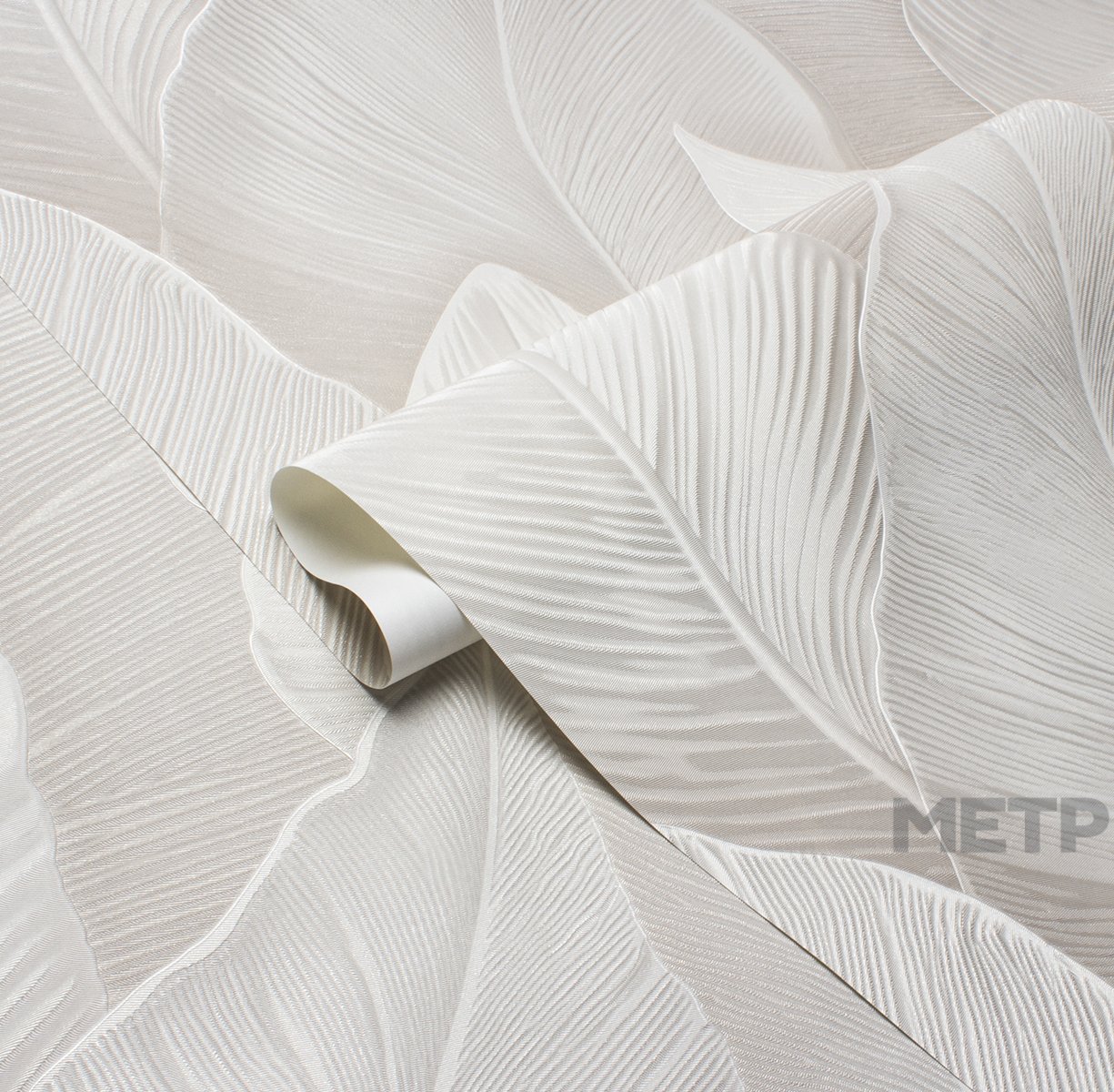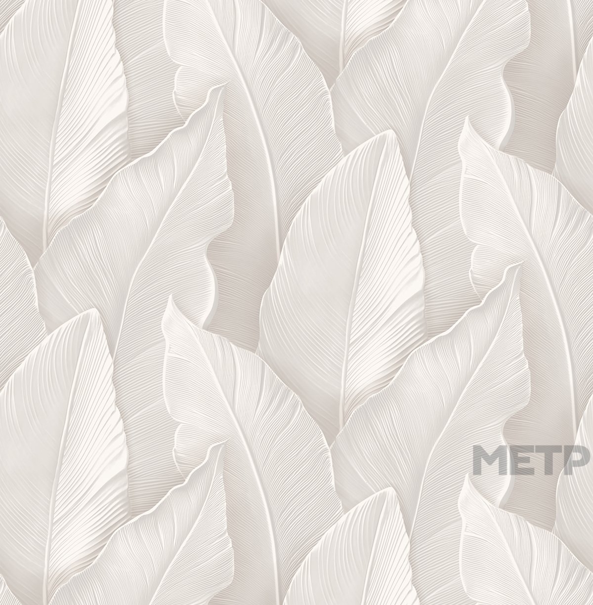 Обои Victoria Stenova Yamaika 588832. "Крупный масштаб, тщательно продуманная композиция и природная эстетика превращают обычную стену в настоящее произведение искусства. Коллекция YAMAIKA от Victoria Stenova отражает современный тренд ""новой роскоши"" — это выбор для тех, кто ценит баланс между смелыми визуальными решениями и истинной элегантностью. Текстурная поверхность с деликатным рельефом усиливает трехмерность изображения, создавая игру света и тени. Каждому дизайну придает выразительность тонкая проработка деталей — каждый лист словно оживает благодаря объемным линиям прожилок и градиентным переходам. Дизайн завораживает и передает мельчайшие нюансы природной текстуры: листья выглядят так, будто выгравированы на шелковистой поверхности. При дневном свете акцент на графичности рисунка, а при вечернем освещении покрытие приобретает мягкое, почти перламутровое сияние. Модная палитра оттенков делает этот смелый растительный принт актуальным решением для разных поколений. Еще одно преимущество коллекции — фоны с интересной и равномерной текстурой, которые можно клеить без подгонки!