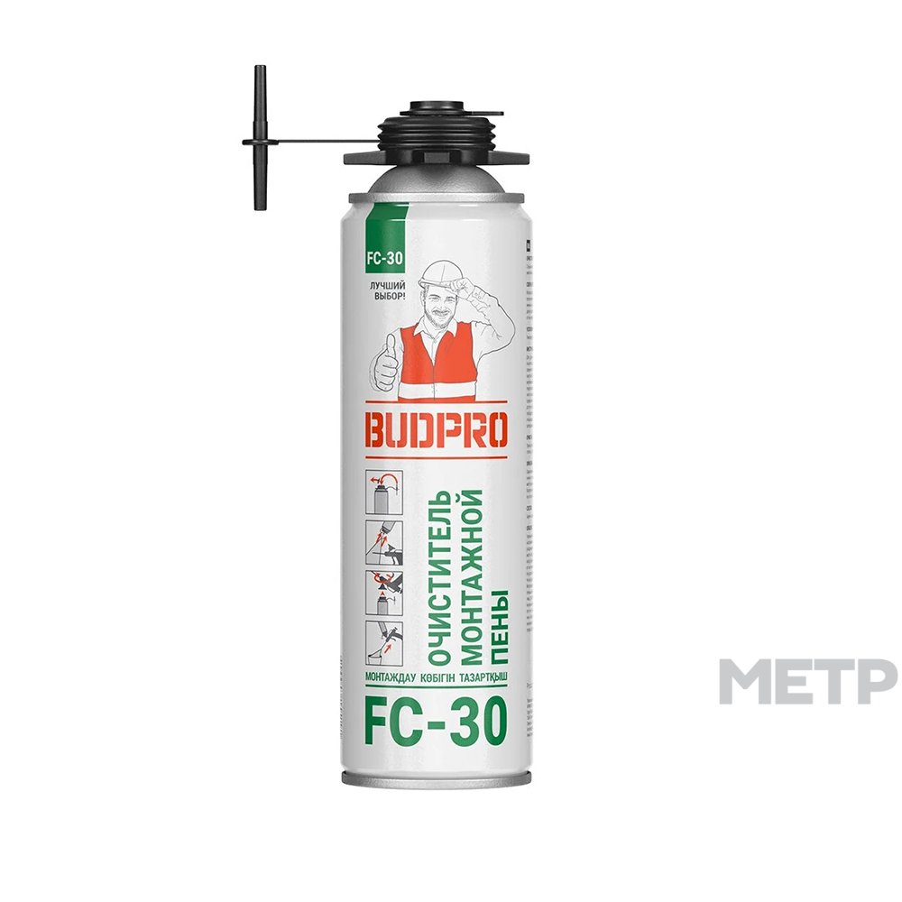 Очиститель пены BUDPRO 440 мл, FC30 эффективно счищает неотвержденную строительную пену с пистолетов для нанесения пены, одежды, прилегающих поверхностей. Подходит для очистки пенопистолета изнутри сразу после его использования.