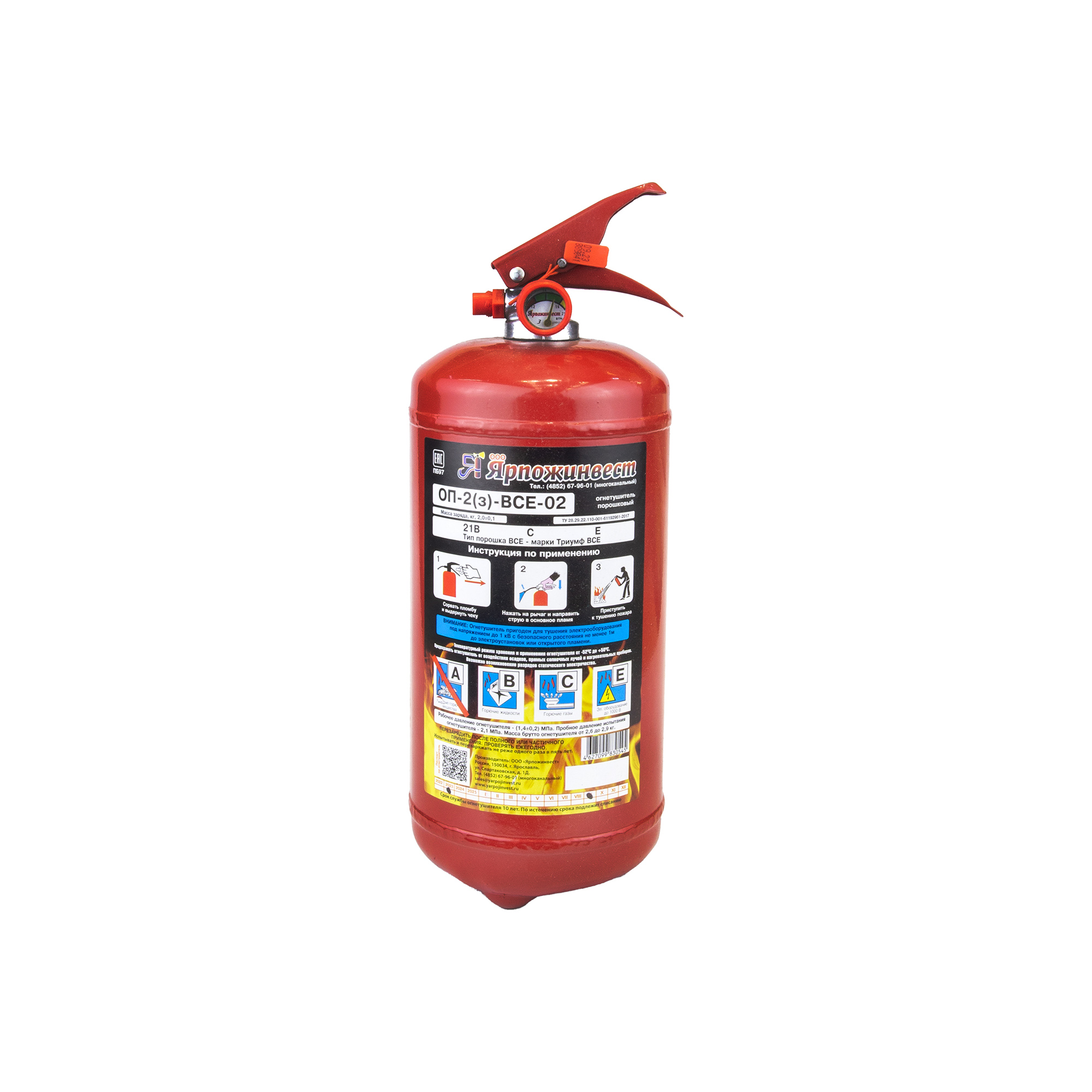 Огнетушитель порошковый Автокомфорт 2 кг B,C,E автомобильный, в корпусе из металла, предусмотрен манометр, длина изделия 42 см, масса – 2 кг. Этот огнетушитель создан специально для использования при тушении возгораний транспортных средств, удобен в обращении и надежен, устойчив к физическим воздействиям.
