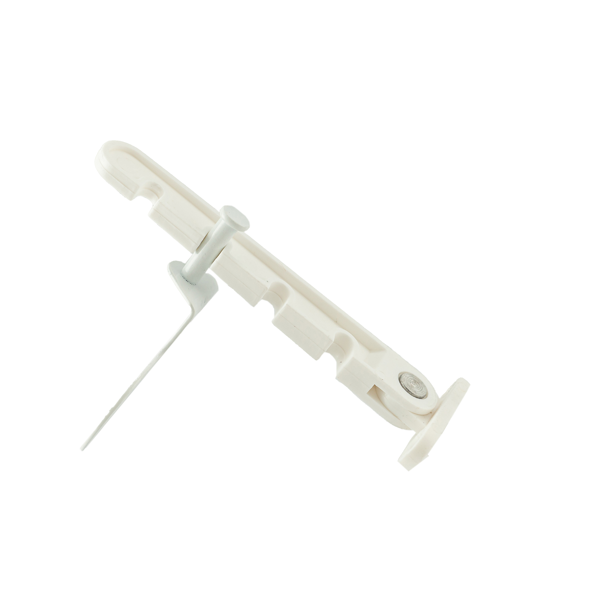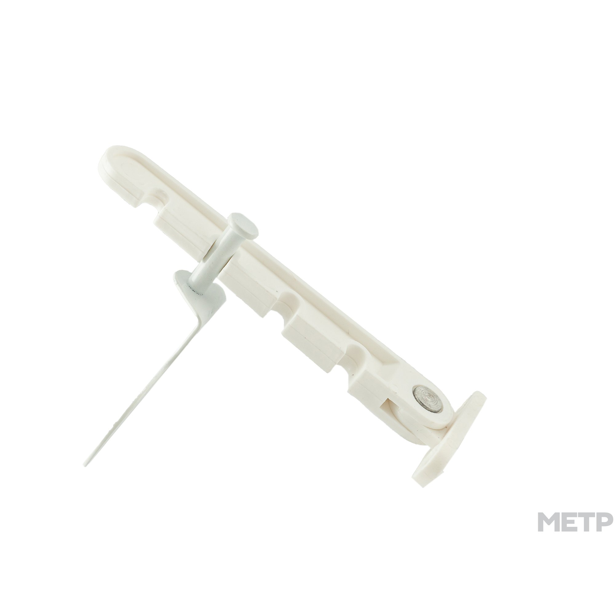 Ограничитель открывания 4 позиции с металлическим держателем белого цвета. Устройство с помощью гребенки позволяет устанавливать окно в наклонной или открытой позиции с зазором от 1 до 7 см. Ограничитель применяется для регулировки открывания окон при низких температурах и ветреной погоде.