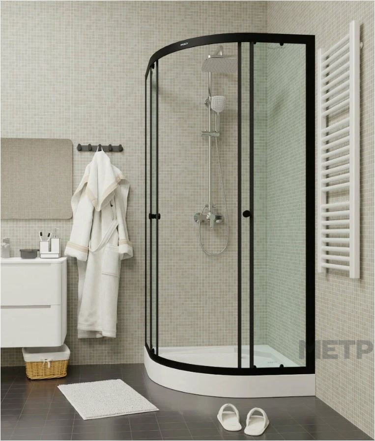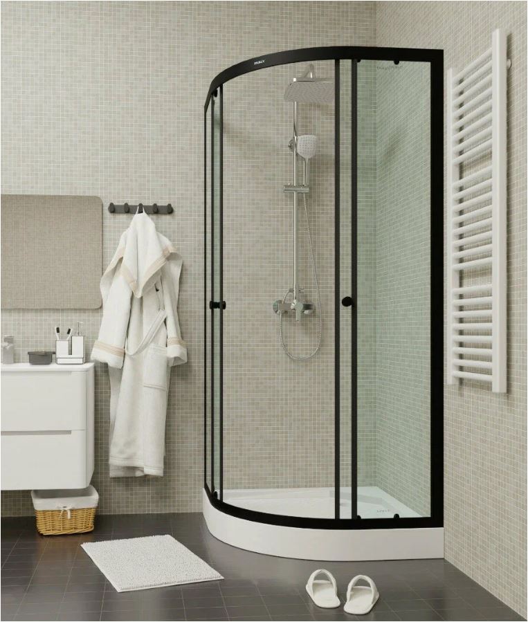 Ограждение душевое Parly (90х90х190 см) с прозрачным стеклом, полукруглым низким поддоном, раздвижное. Важная часть в любой кабине. Данные ограждения отвечают современным представлениям об эстетике, достаточно прочные и надежные для длительной службы, при грамотном использовании.