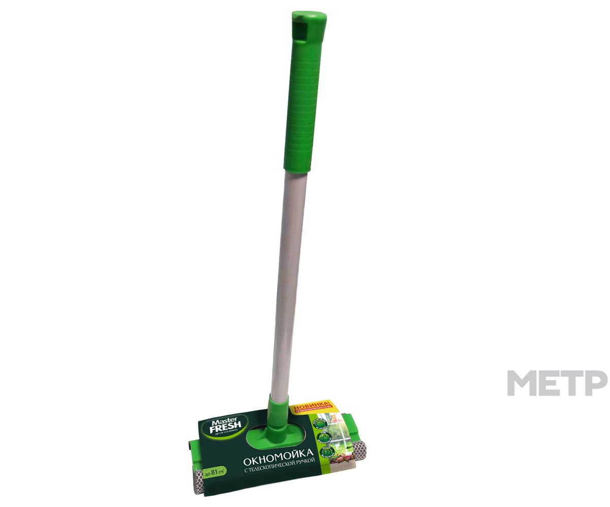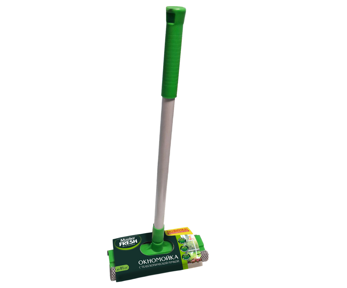 Окномойка с телескопической ручкой Master FRESH предназначена для качественной и удобной мойки окон, зеркал, керамической плитки и других поверхностей. Её можно использовать дома, на даче, в офисе и автомобиле. После мытья окон, поверхность становится чистой и сверкающей. Окномойка снабжена скребком из качественной резины, не твердеющей при низких температурах и губкой из плотного поролона покрытого синтетической сеткой, стойкой к истиранию, имеет телескопическую ручку для труднодоступных мест. Телескопический черенок позволяет менять длину изделия от 52 до 81 см. Насадка подходит для черенков от швабр Master FRESH.