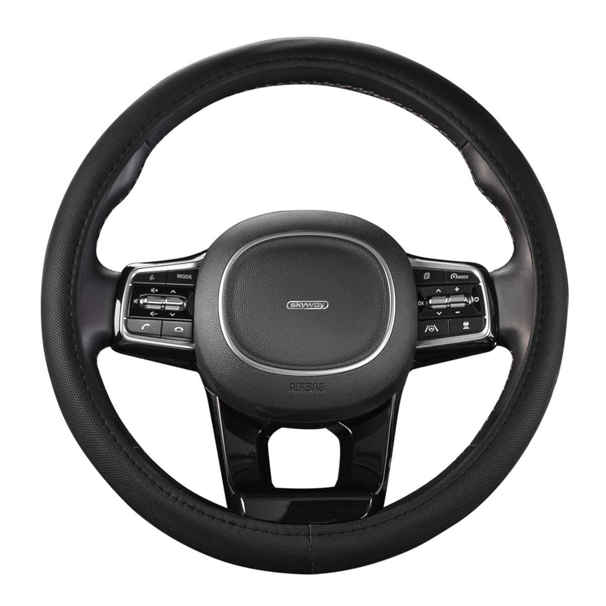 Оплетка на руль экокожа S01102441 M - популярная, стильная оплётка в классическом стиле с лаконичным дизайном и удобной перфорацией обеспечивает надёжный контакт ладоней с ободом рулевого колеса. Оплётка выполнена из экокожи, которая сохраняет привлекательный внешний вид в течение длительного времени, проста в уходе, износостойка. За счет многослойной структуры не нагревается при воздействии солнечных лучей, а в зимнее время нехолодная на ощупь.
