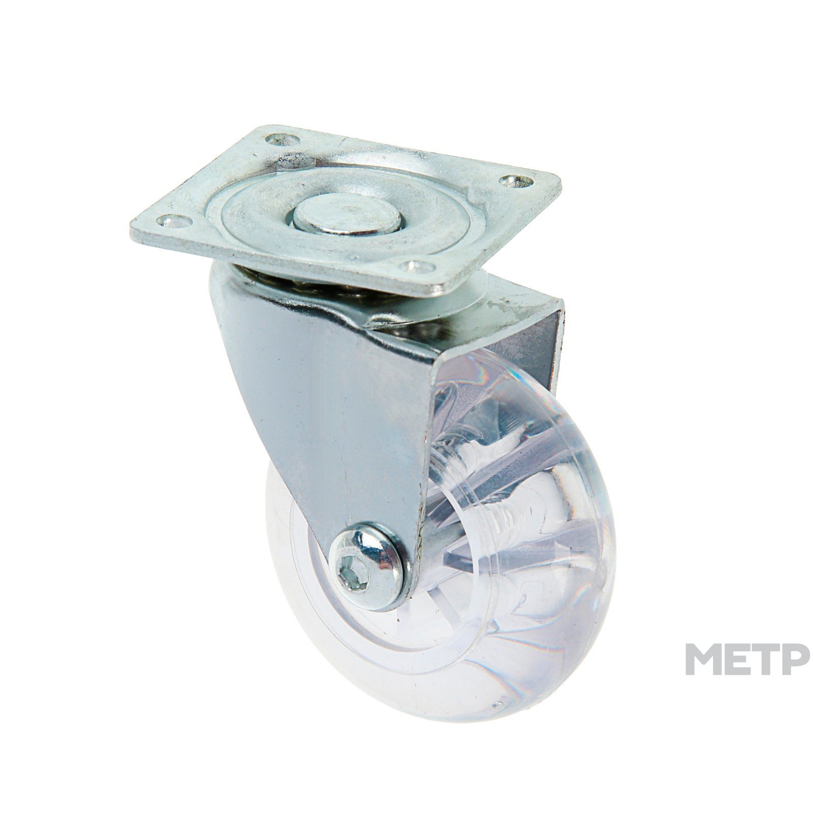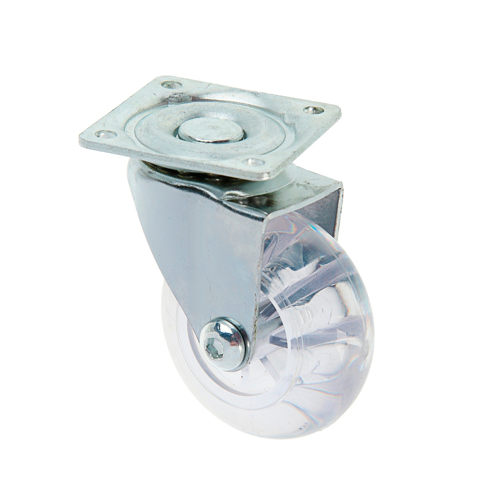 Опора колесная на площадке 50 мм — стильное мебельное колесо из прозрачного силикона для современных предметов интерьера с надежной металлической платформой для крепежа. Закрепленная на мебельных днищах, фурнитура поможет вам свободно передвигать мебель по дому, если нужны уборка или перестановка.
