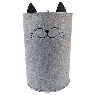 Универсальная корзина "Котик" выполнен из плотного синтетического войлока. Это мягкий экологичный материал, приятный на ощупь, благородного серого цвета. Корзина выполнена в виде цилиндра, имеет круглое устойчивое основание, объемная и вместительная. В виде отделки используется вышивка - мордочка котика и аппликация - ушки. Это идеальный помощник в хранении различных вещей, белья, игрушек, и т.д. Изделие можно стирать (бережно), отпаривать места заломов используя функцию отпаривания без прямого касания материала. Размер 30х30х48 см. Объем 29 л.