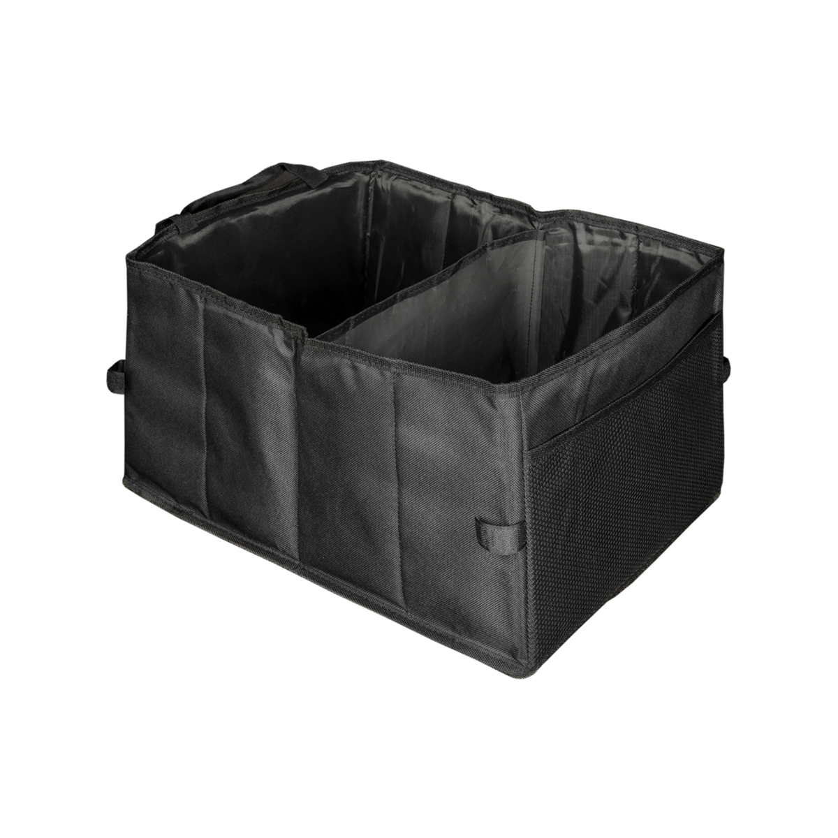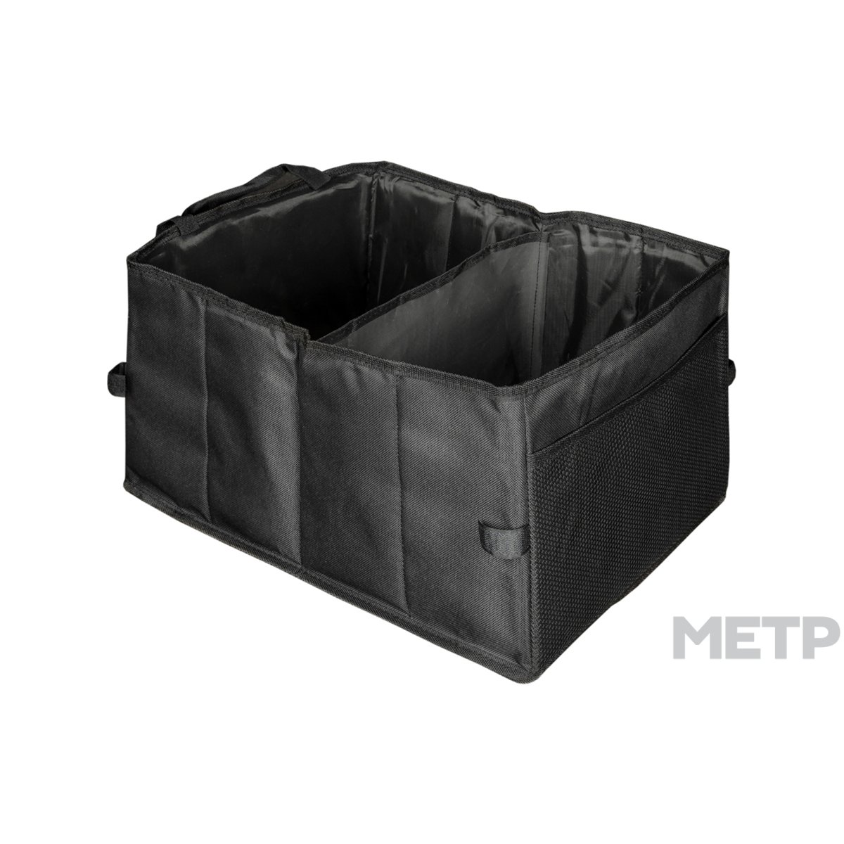 Органайзер автомобильный в багажник 40х30 см - многофункциональная сумка-органайзер в багажник автомобиля. Позволяет удобно хранить вещи и разные мелочи в салоне или багажнике. Экономит место и сохраняет порядок. Органайзер без крышки обеспечивает легкий доступ к нужному предмету. Жесткие боковые стороны придают устойчивости. Наличие ручек делает сумку удобной для переноски. Боковые фиксаторы позволяют складывать органайзер до компактных размеров. Можно использовать в качестве сумки для пикника или в бытовых условиях (в гараже или в доме). Сбоку находится удобный карман-сетка. На основании липучки, которые удерживают аксессуар на текстильном покрытии.
