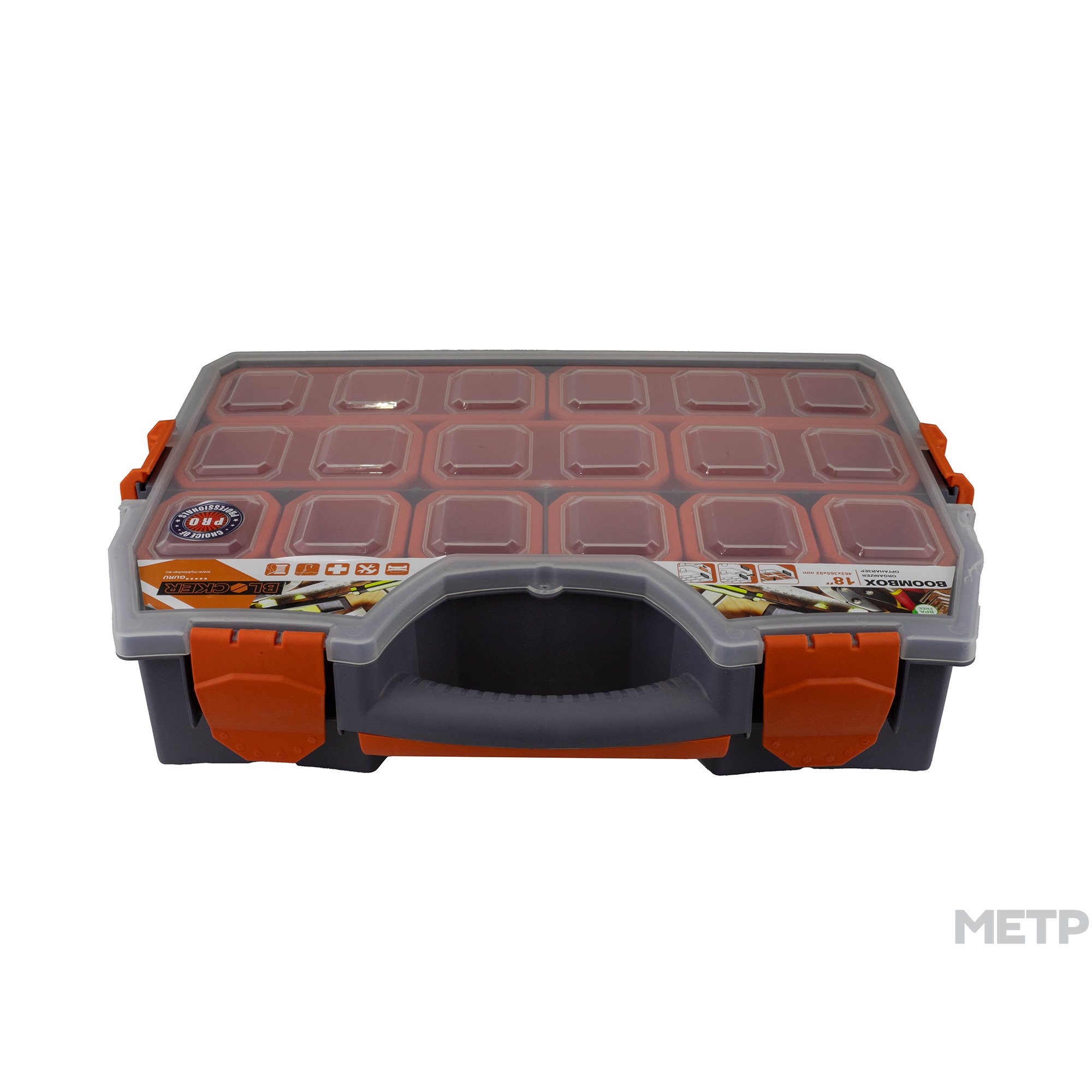 Органайзер "Boombox" 18"/46см серо-свинцовый/оранжевый это удобная система для хранения разных мелочей. Много мелких отсеков помогут разсортировать мелочи под личные нужды, а прозрачная крышка позволяет видеть содержимое, не открывая ее.