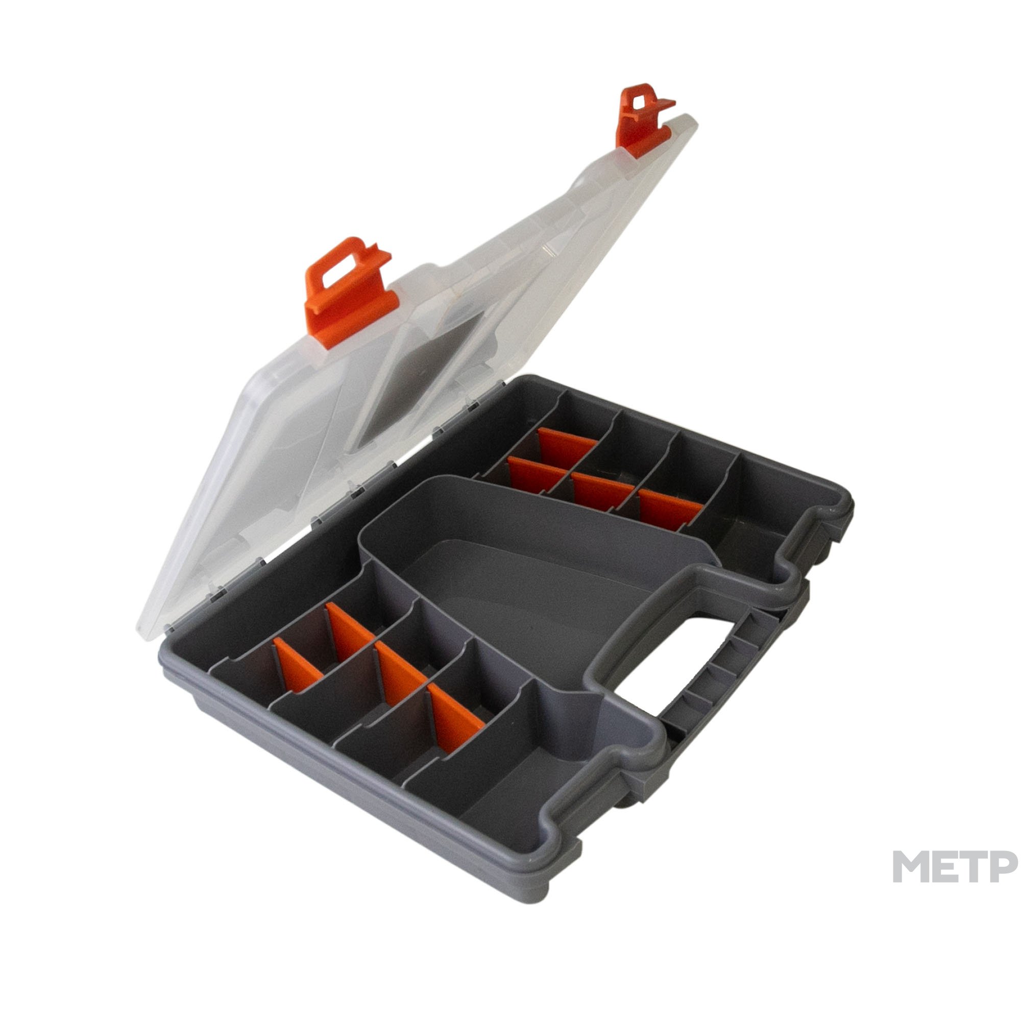 Органайзер STELS 31*25*5 см с крепкой ручкой и практичными защелками создает дополнительные удобства при перенесении инструментов. Пластиковая коробка надежно защищает внутреннее содержимое органайзера от пыли, грязи, падения и сколов. Имеются переставные разделители для перекладывания инструментов.