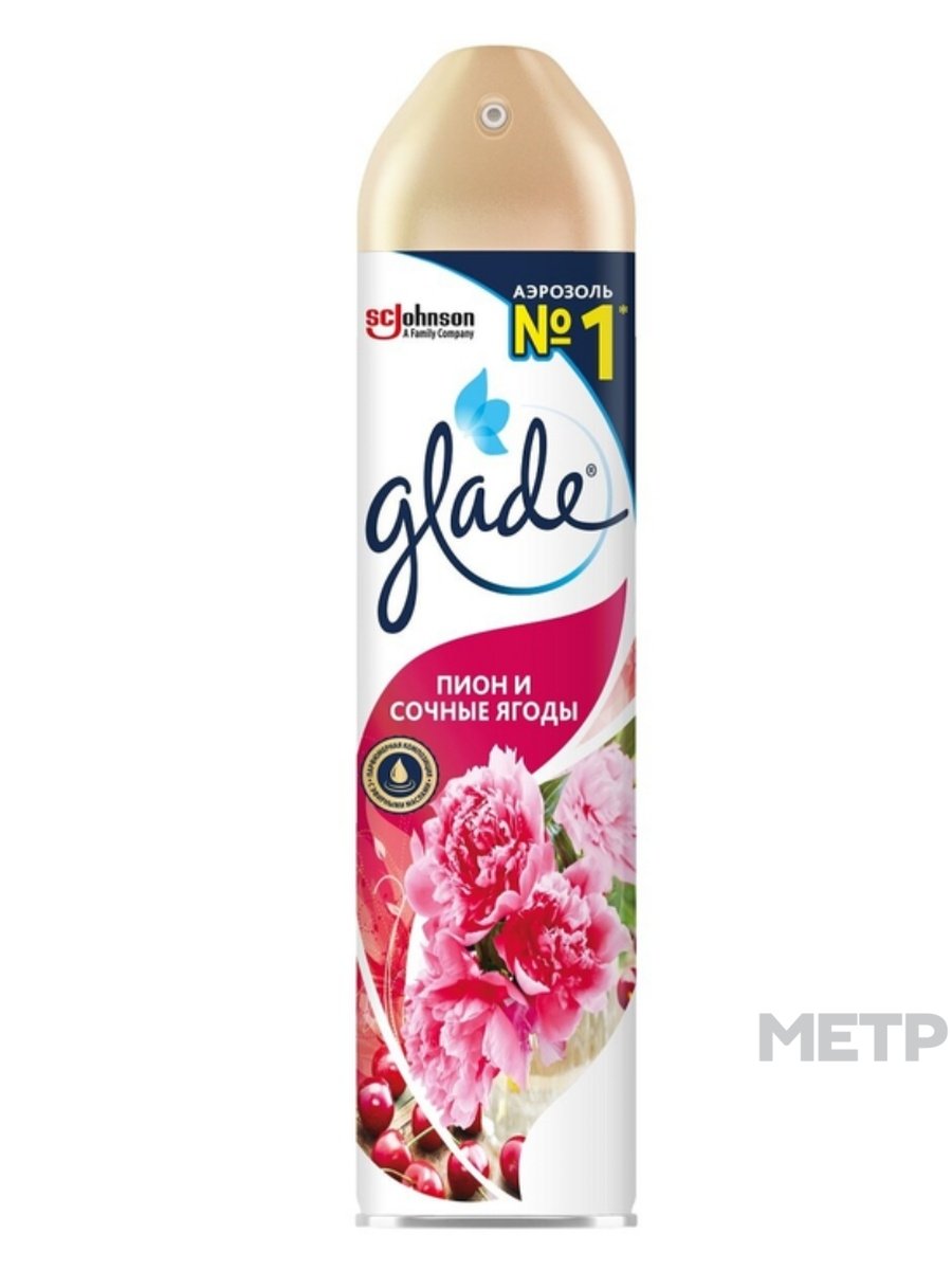 Освежитель воздуха Glade Пион и сочные ягоды 300 мл – уникальная, аэрозольная система, распространяющая приятный аромат в помещении. Легко и мгновенно инактивирует молекулы неприятного воздуха, тем самым делая его чистым и свежим, наполняя атмосферу ароматом сочных ягод и пиона.