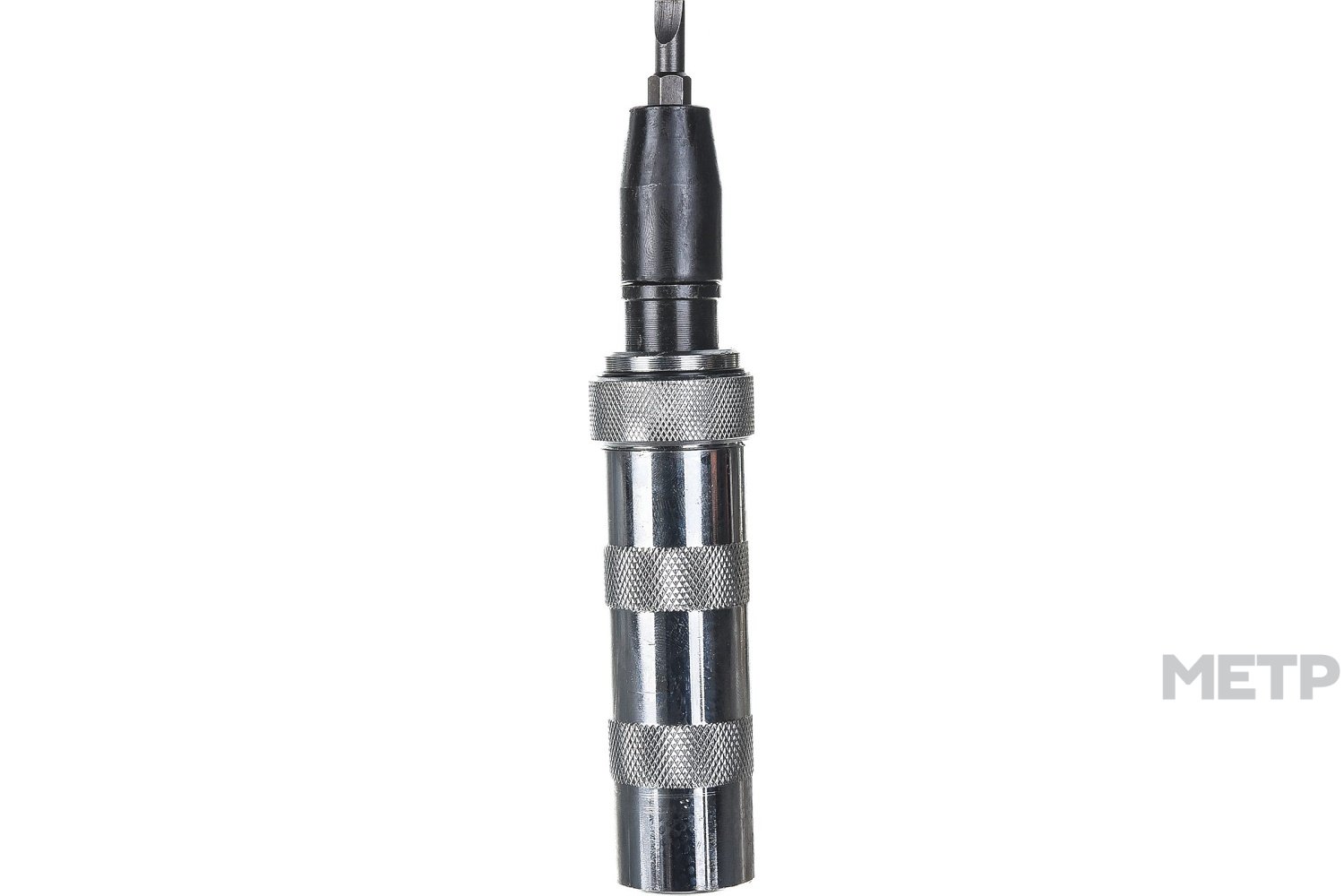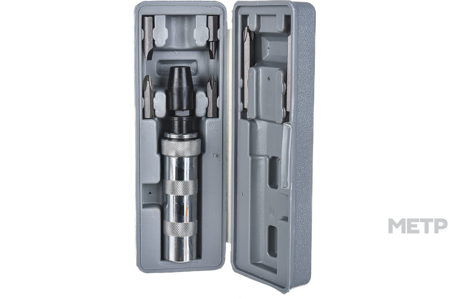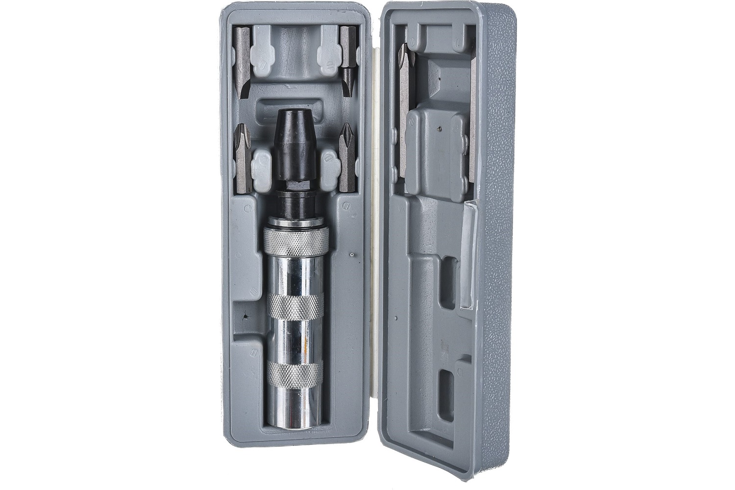 Отвертка ударно-поворотная 1/2 с набором из 6 бит. Отвертка изготовлена из углеродистой стали. Укомплектована битами с профилями: SL – 7 x 35, 8 x 35, 8 x 65 мм.