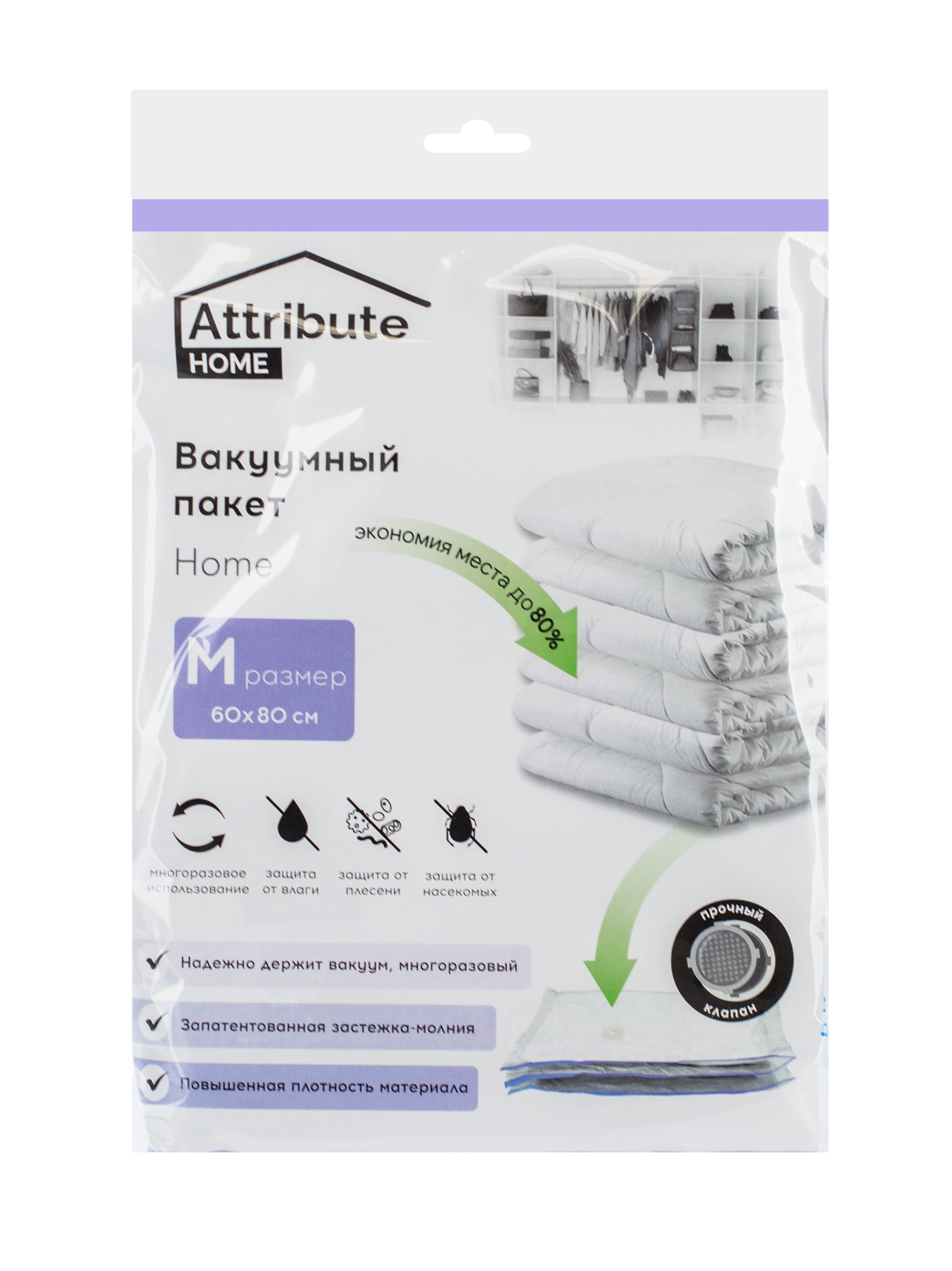 Пакет вакуумный HOME с клапаном удобно использовать при переезде, в путешествиях, а также для хранения пуховиков, курток, подушек, одеял и предметов одежды несезонного гардероба. Для герметизации открывают крышку клапана и пылесосом откачивают воздух из пакета. Содержимое мешка будет надежно защищено от влаги, пыли и насекомых. Прозрачный материал позволяет быстро находить нужную вещь.