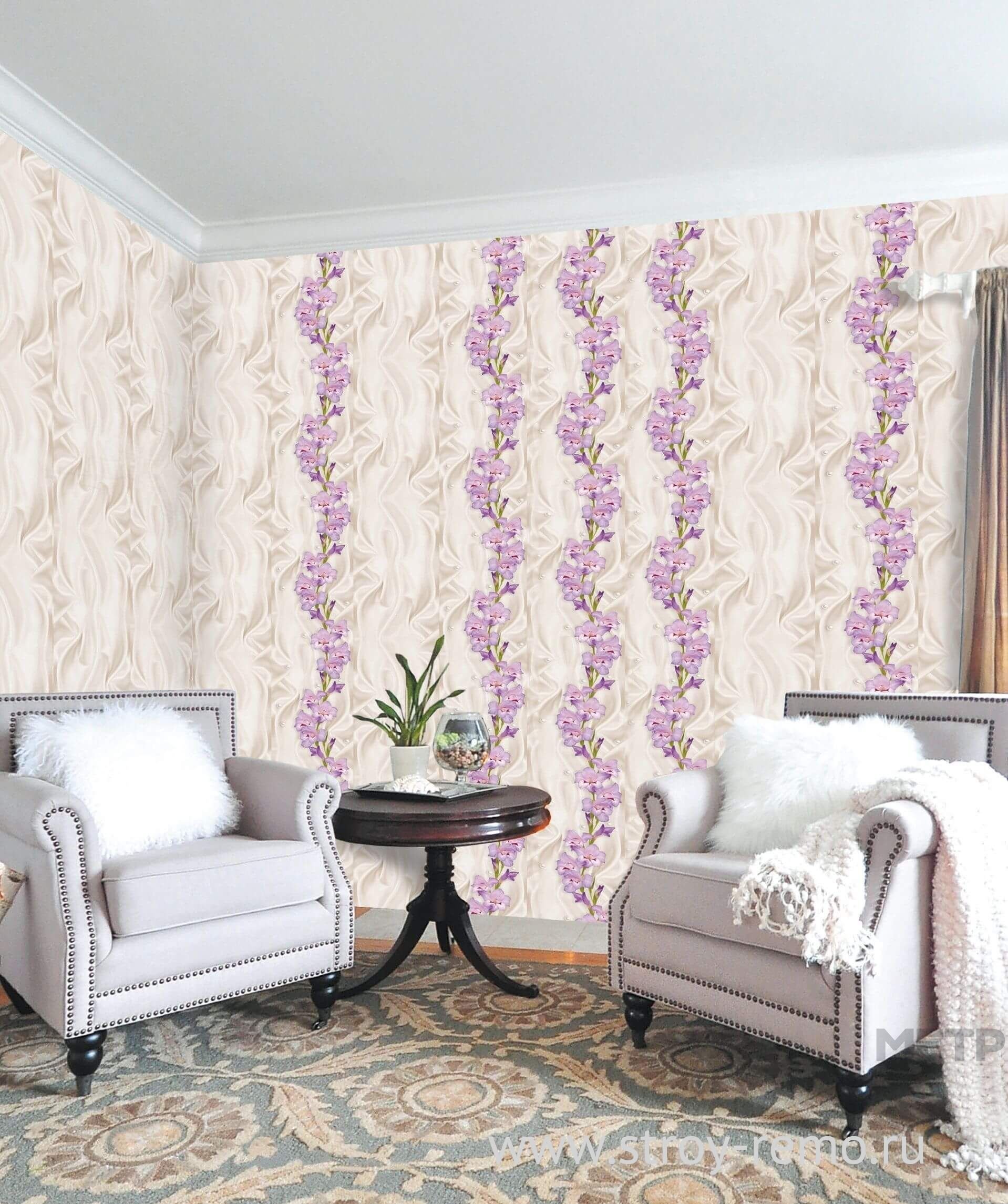 Панель ПВХ Нежный шелк фон 250х2700 мм - лучший вариант для классического и современного пространства. Материал способен выдерживать воздействие влаги, поэтому подходит для ванных и кухонь. Он будет радовать вас долгое время. При этом панели останутся привлекательными внешне и сохранят все свои свойства. Создастся впечатление, будто вы совсем недавно приобрели их.