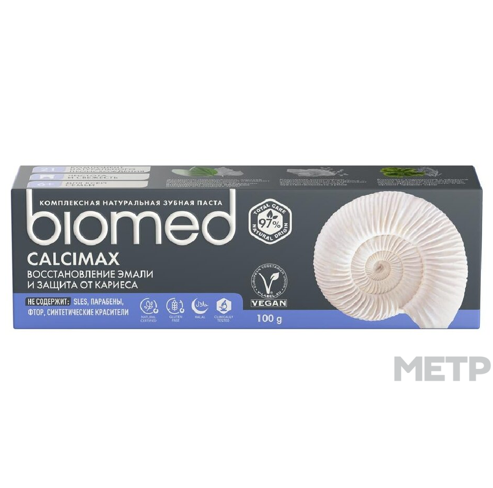 Паста зубная Biomed Кальцимакс 100 мл с кальцием и морскими солями великолепно восстанавливает природную твердость эмали и красиво отполировывает ее поверхность. Благодаря экстрактам из березовых листьев и подорожника в полости рта не появится кариес и не начнутся воспалительные процессы.