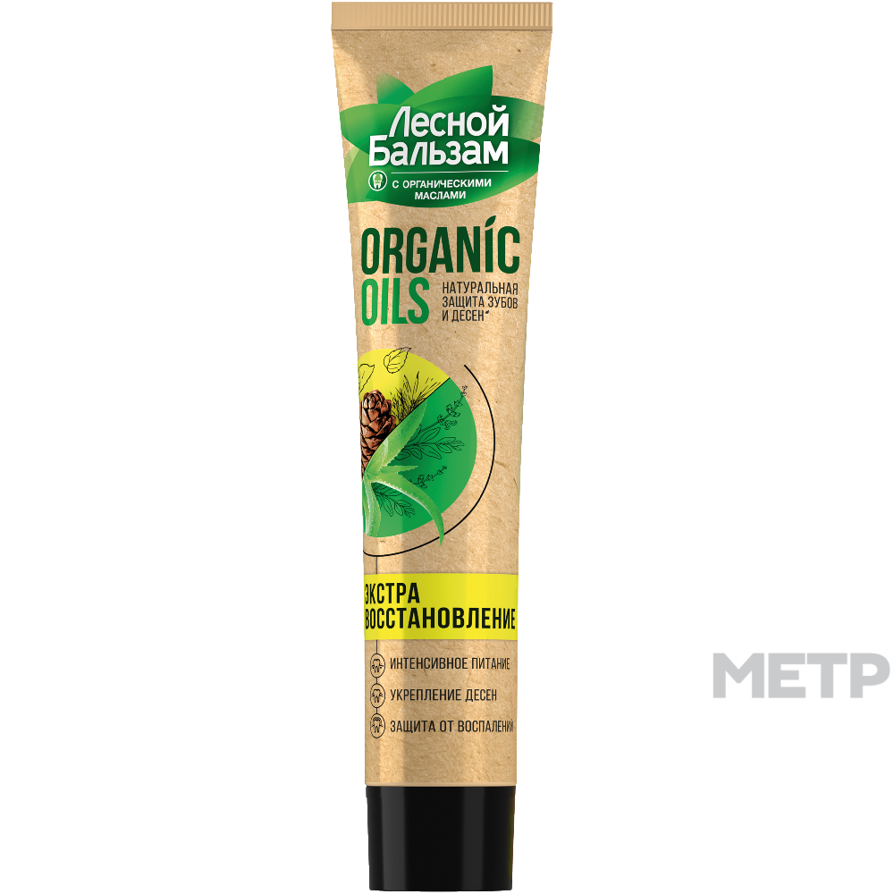 Паста зубная Лесной Бальзам Органические масла и алоэ 75 мл — за здоровое состояние ваших зубов, крепость эмали, отсутствие патогенных микроорганизмов отвечают мощные природные ингредиенты: кедр, мята и лаванда. Также состав оказывает противовоспалительное и восстанавливающее воздействие на десны.