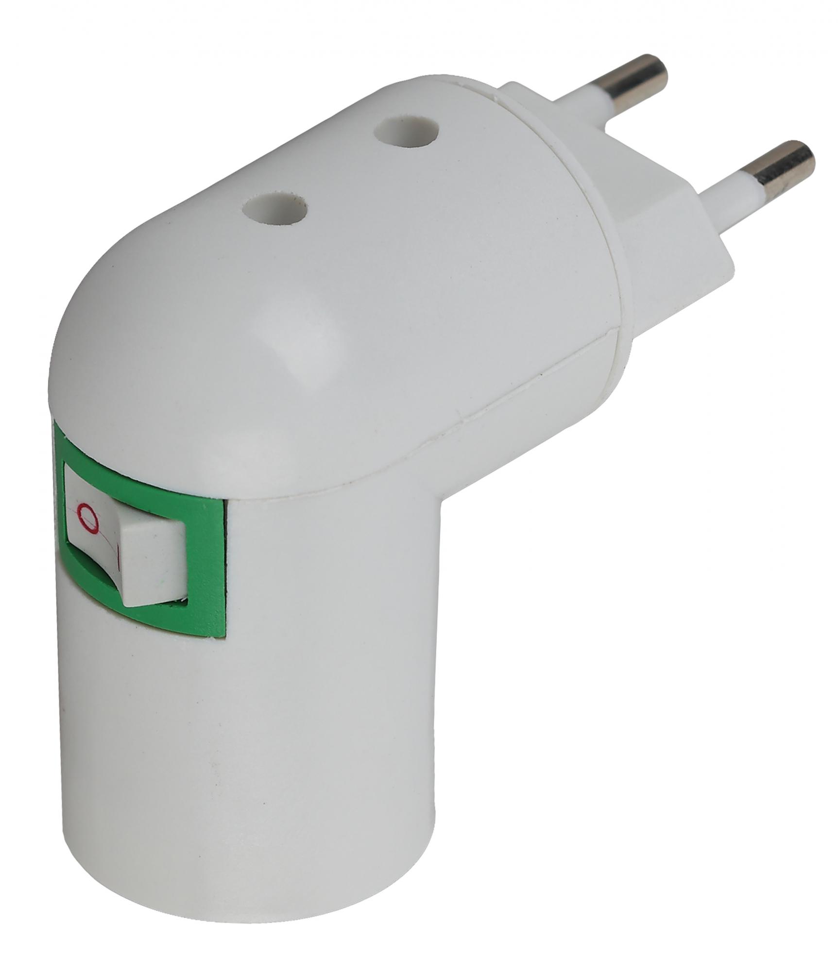 Переходник Е27 вилка с выключателем изготавливается из термостойкого пластика, материал химически устойчивый к агрессивным средам, обладает высокой прочностью и теплостойкостью. Переходник вилка-Е27 позволяет с помощью расположенного на нём выключателя включать (отключать) освещение не вынимая переходник из розетки.