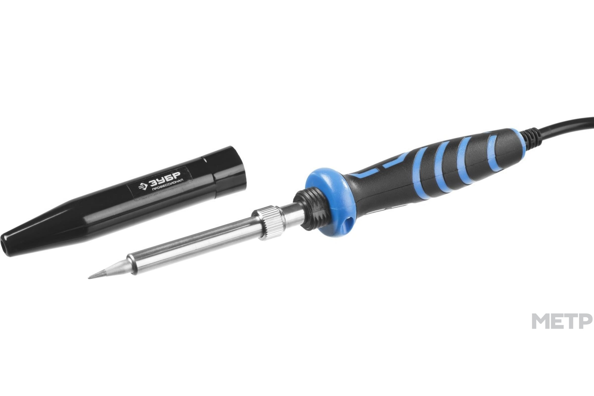 Паяльник 60 Вт Зубр 55413-60 имеет тип жала конус, материал рукояти – двухкомпонентный пластик, нагрев за 6 минут (расчетное время). Современный прибор, устойчивый к падениям и иным механическим воздействиям. Использование сменных жал с никелевым покрытием существенно продлевает службу.