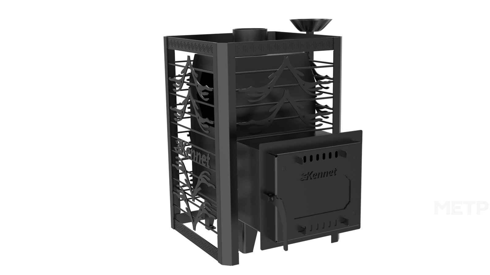 Печь банная Kennet Форт 12 (сетка) - современная банная дровяная печь с открытой съемной сеткой-каменкой предназначена для обогрева парильного помещения объемом до 14 м³ и получения влажного и сухого пара. Данную модель отличает глубокая закрытая каменка в форме многогранника для максимального задержания тепла в печи. Увеличенный объем камней в сетке-каменке обеспечивает стабильную температуру в парильном помещении и способствует лучшей парогенерации. Достоинствами печи являются несложная установка, возможность переноски, простота использования и дожиг вторичных газов. В комплект печи входит парообразователь, который можно установить спрвой или слевой стороны. На дверце печи имеется регулировка подачи воздуха. Диаметр дымохода ф115мм. Длина топочного тоннеля 200мм. Объем камней в сетке-каменке 70кг. Объем камней в закрытой каменке 15кг. Толщина используемого металла для топки печи толщиной 3,0мм. Толщина металла закрытой каменке 4,0мм.Есть возможность использования стекла вместо стальной заглушки, размер стекла 160х250х4,0мм.