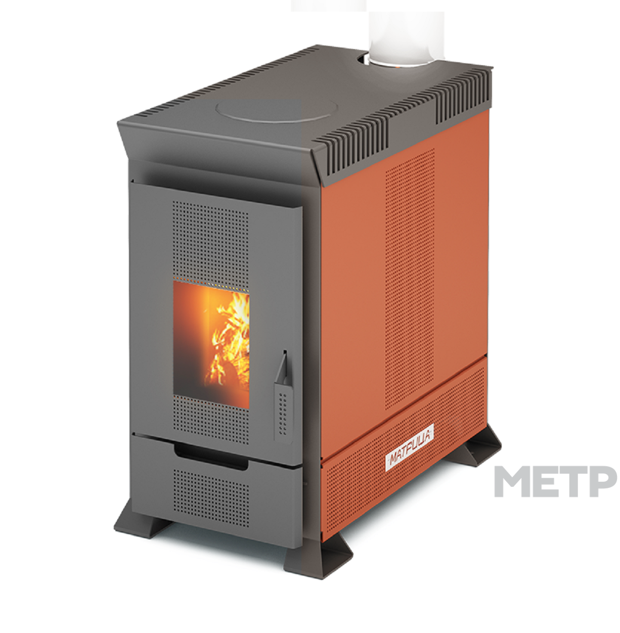 Матрица 1.1 изготовлена из высококачественных материалов, сталь 08PS толщиной 3мм, пластина из нержавеющей стали в задней части топки для защиты от прогорания, чугунный колосник.