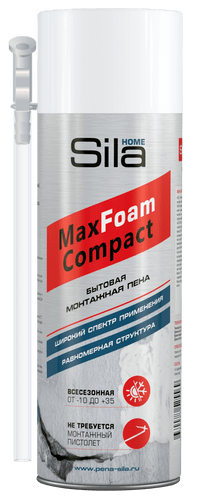 Всесезонная монтажная пена Sila Home Max Foam Compact бытовая 400 мл - это однокомпонентная, готовая к применению, полиуретановая пена в аэрозольной упаковке. В качестве газа – вытеснителя применяется углеводородный пропеллент. Затвердевает под действием влаги воздуха и влаги поверхности, на которую наносится.