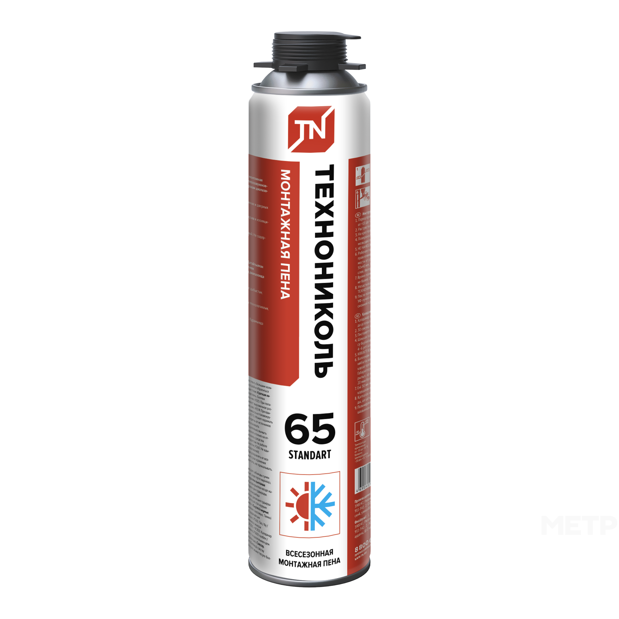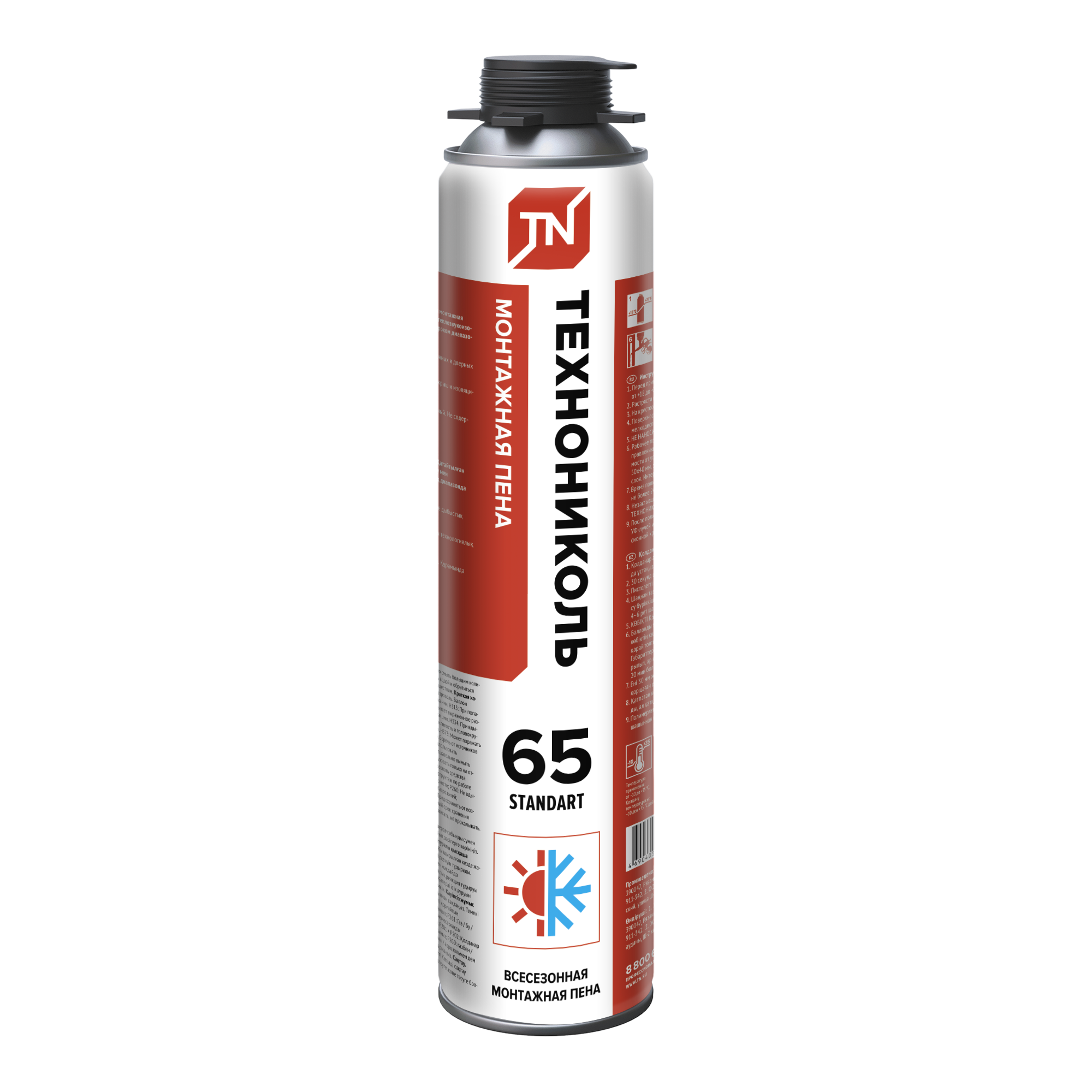 Монтажная пена ТЕХНОНИКОЛЬ 65 STANDART всесезонная 1000 мл представляет собой однокомпонентный полиуретановый материал в аэрозольной упаковке. Монтажная пена отличается высокой эластичностью, контролируемым объемом монтажного валика, высокими показателями тепло- и звукоизоляции, активным первичным и умеренным вторичным расширением.