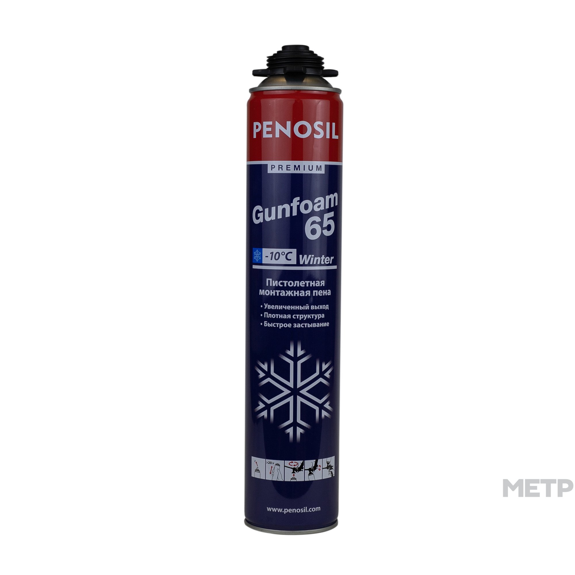 Пена монтажная Penosil Gold Gun65 875 мл профессиональная зимняя - пистолетная пена для тепло- и звукоизоляции для профессионалов. Пена с высочайшим стабильным качеством и повышенной производительностью, для самых требовательных пользователей и тяжелых условий. Позволяет точную дозировку и экономичное использование. Выход на 15% больше, чем у обычных пен. Применяется для работы по изоляции в зимнее время, установка и изоляция дверей и окон, заполнение отверстий и зазоров, изоляция стыков.