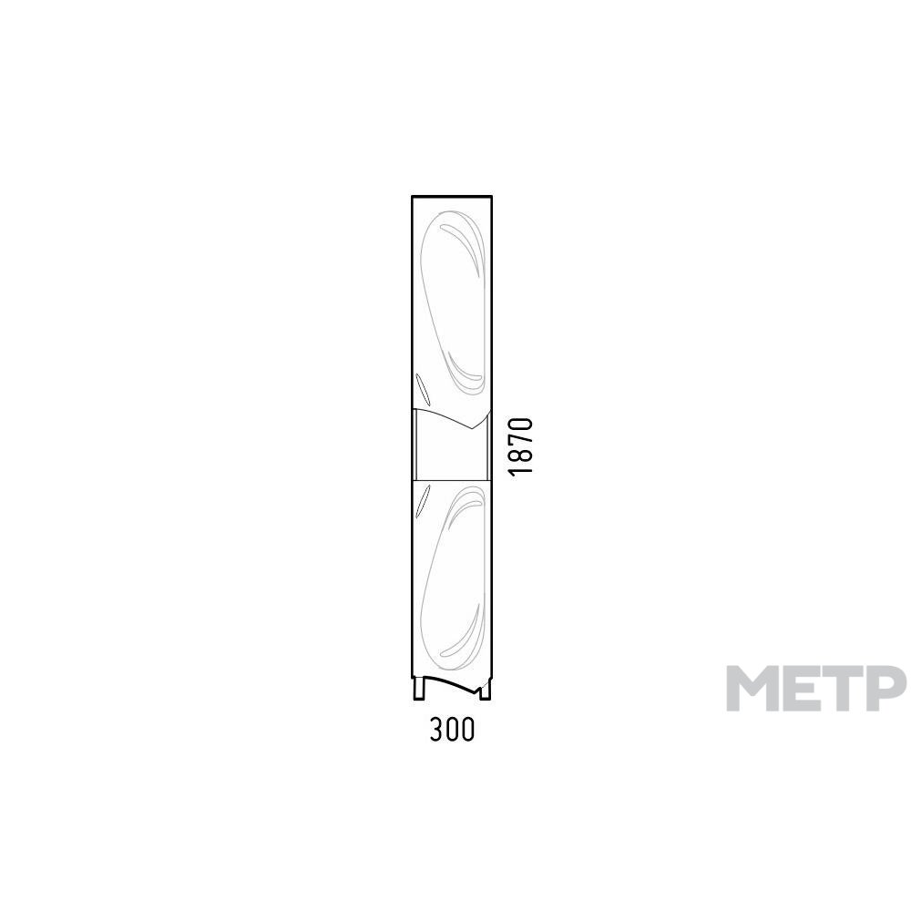 Пенал шириной 30 см оборудован двумя автономными вместительными секциями и нишей высотой по центру. В верхней секции две вкладные полки, в нижней части одна полка.