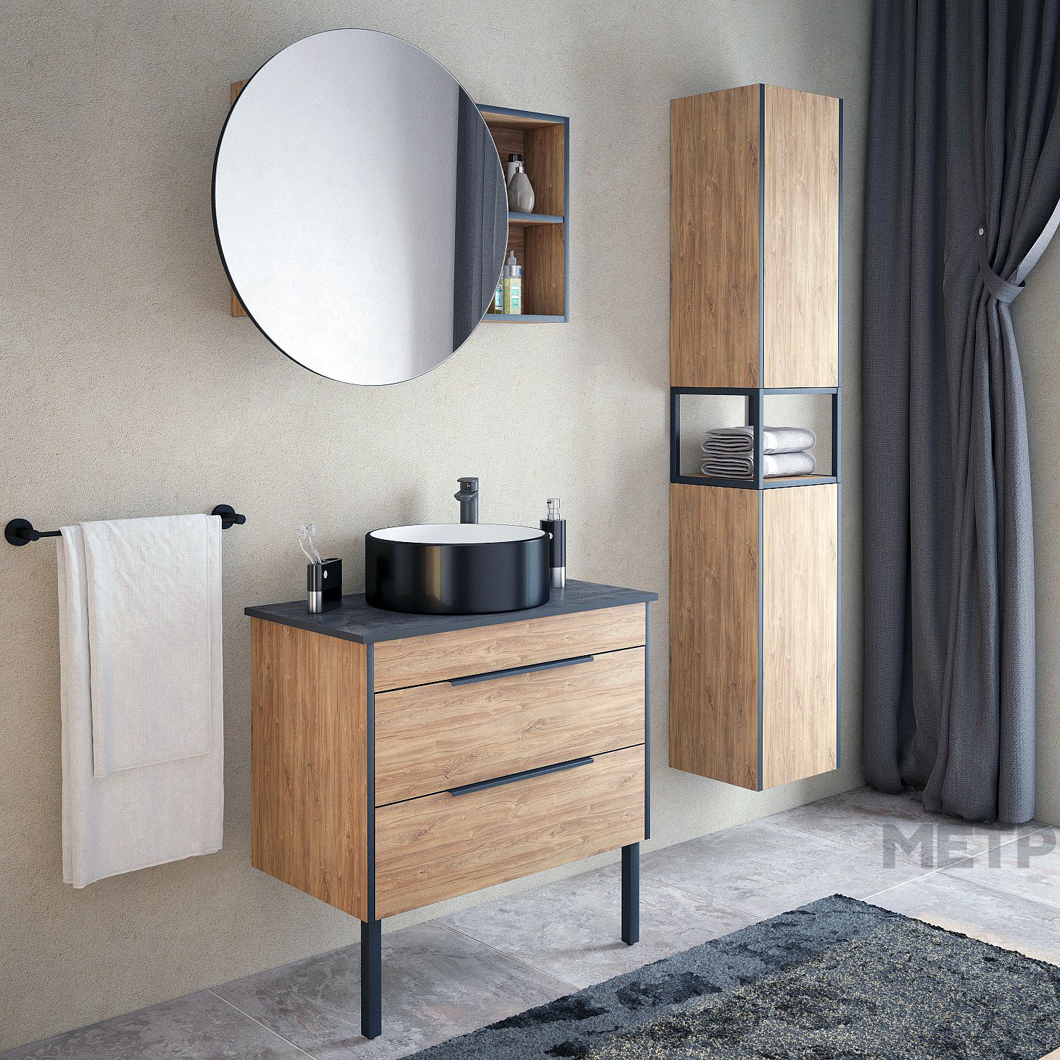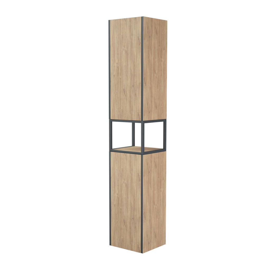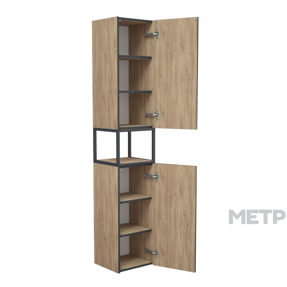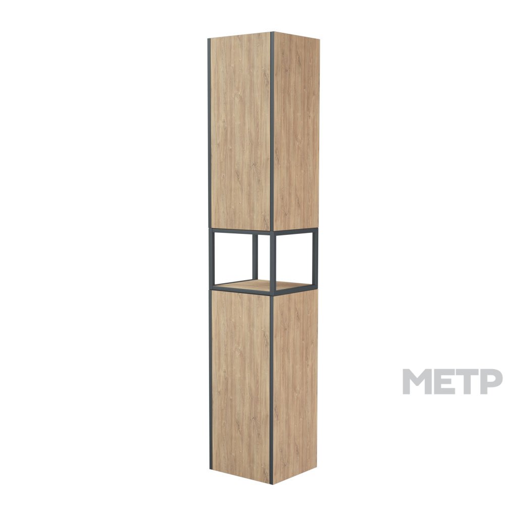 Соединение графичности металла и теплой богатой фактуры дерева - это коллекция ФОРЕСТ. Пенал оснащен двумя вместительными секциями с распашными створками и сквозным металлическим каркасом по центру между секциями. За каждой дверцей по две регулируемых по высоте полки. Ручки на фасадах отсутствуют - открывание дверей осуществляется при помощи специальных мебельных толкателей посредством нажатия на дверь.