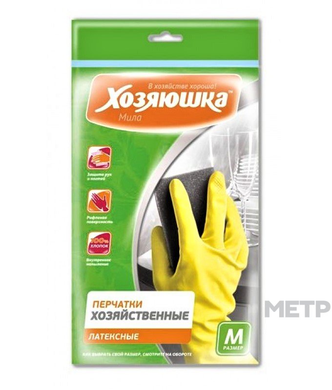 Перчатки латексные Хозяюшка Мила L 1 пара активно применяются в различных сферах деятельности, благодаря тому, что обладают высокой прочностью и предназначены для многоразового использования. Водонепроницаемы и устойчивы к агрессивному воздействию.