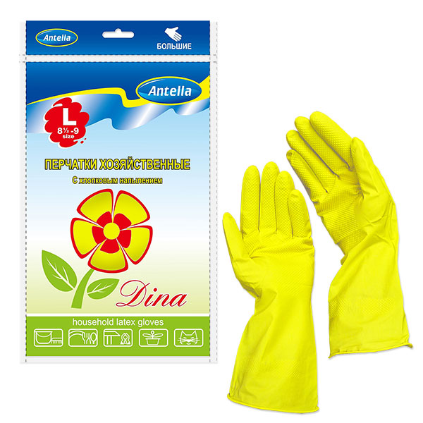 ДИНА перчатки РЕЗИНОВЫЕ с хопком размер L большие