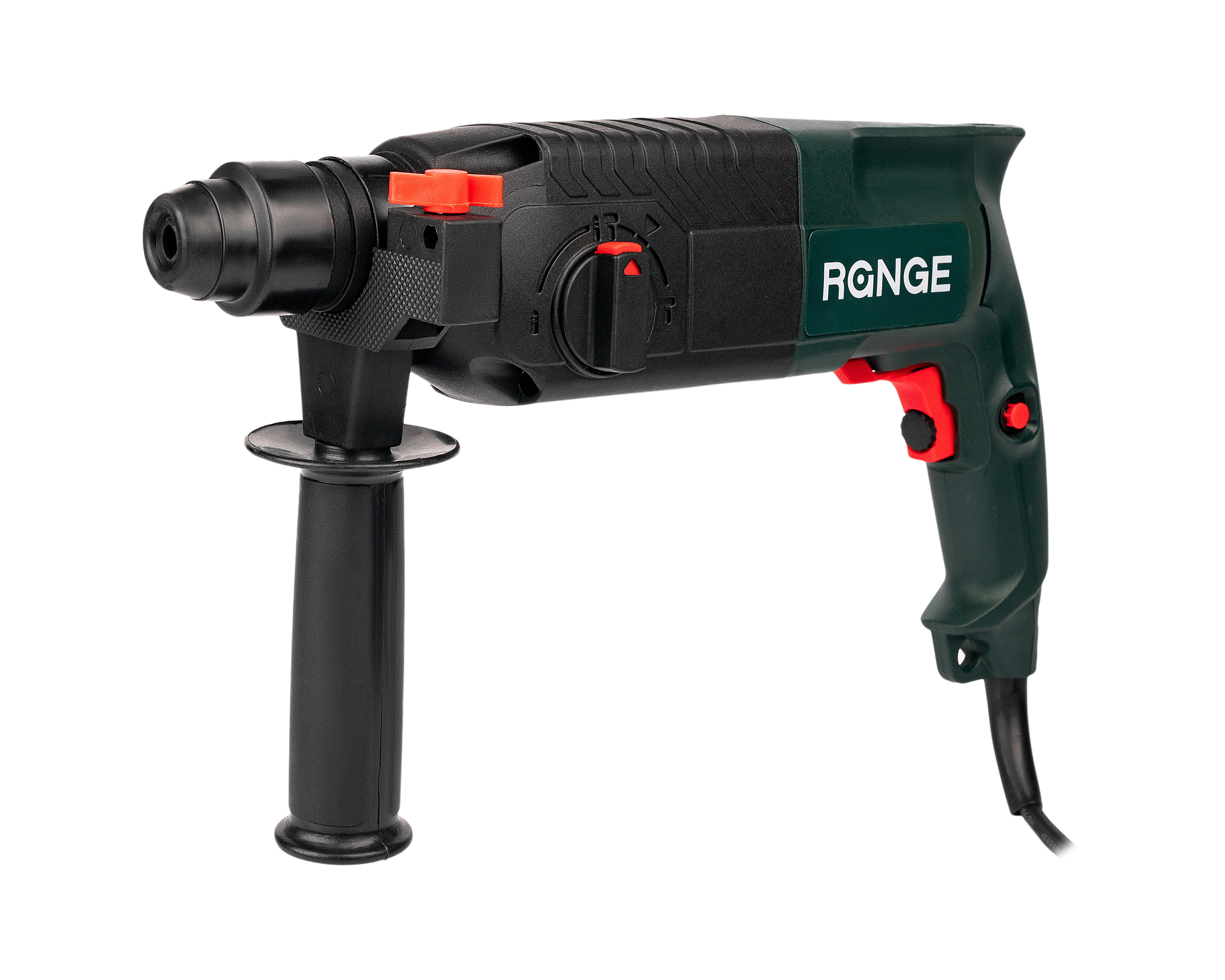 Перфоратор RANGE REH850/24-А - три режима работы обеспечат быстрый, но в то же время качественный результат при работе с различными материалами. Реверс позволяет легко извлечь насадку при заклинивании. Система SDS-Plus позволяет менять буры легко и без усилий. Мощный, надежный двигатель, точная регулировка скорости вращения, фиксатор выключателя, удобная рукоять, глубиномер – все это повышает производительность и делает работу с инструментом легкой и комфортной.