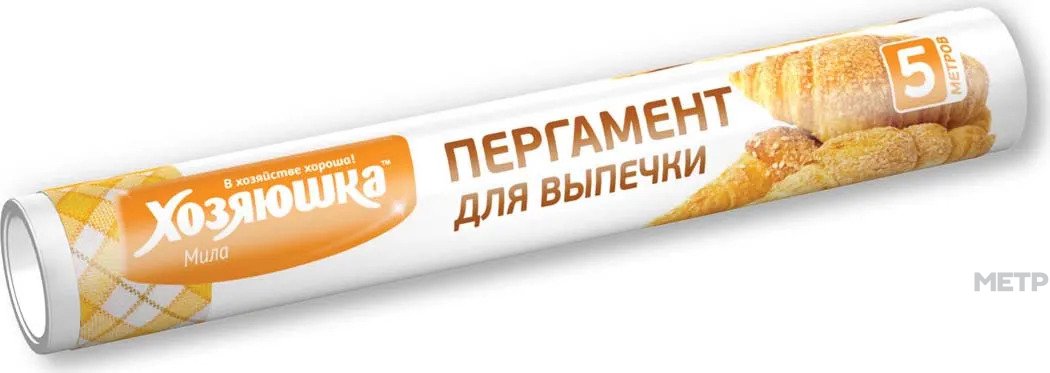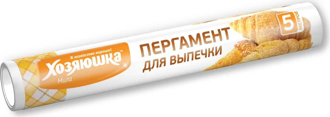 Пергамент для выпечки Хозяюшка Мила 5 м 28 см устойчив к влаге, жиру и высоким температурам. Он остается прочным при механических повреждениях. Пергамент является экологичным материалом и не выделяет вредных веществ при контакте с пищей и нагревании. Он подойдет для выпекания и приготовления холодных десертов.
