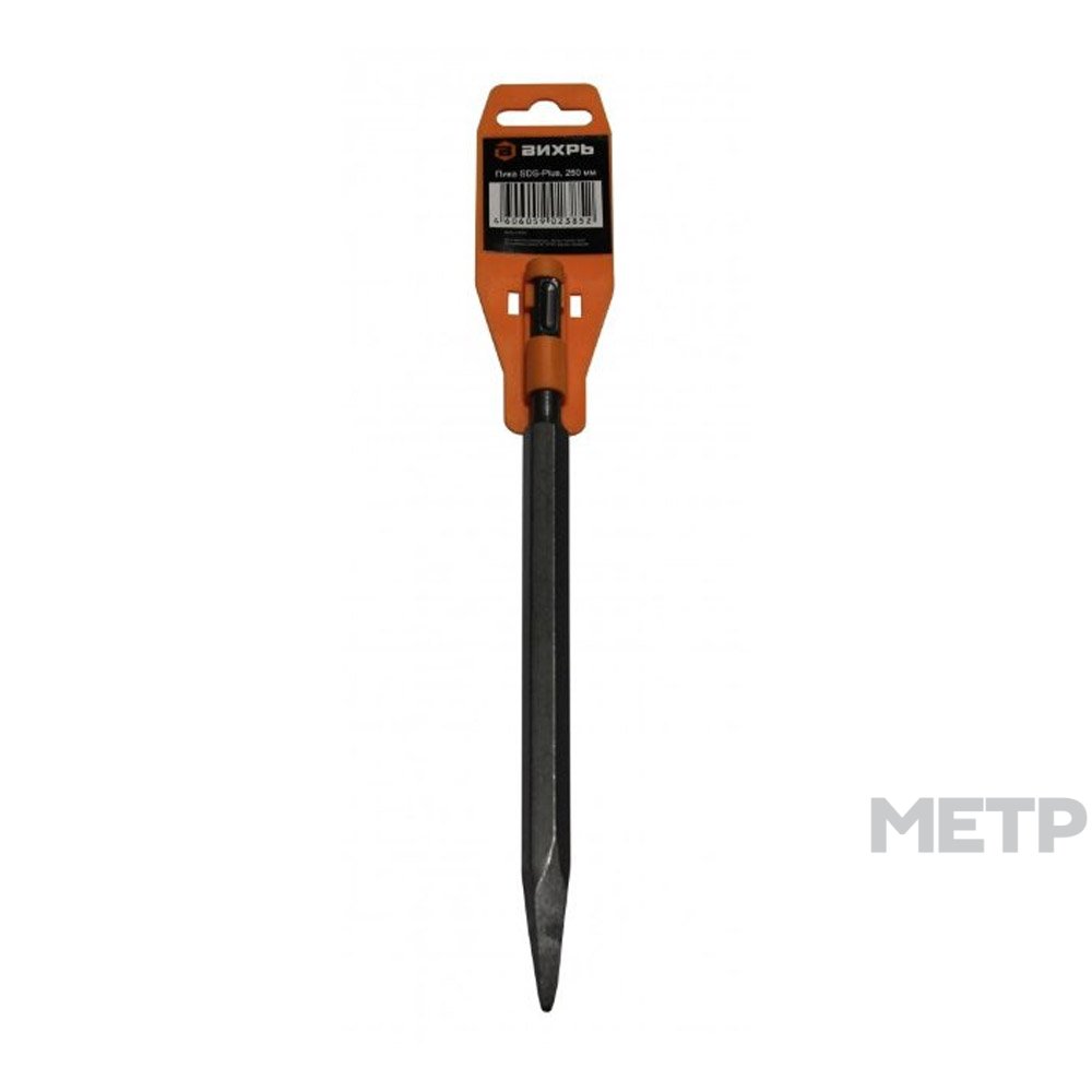 Пика 250 мм SDS PLUS Вихрь — высокопрочный сменный элемент-насадка на перфораторы и отбойные молотки. Материалом изготовления послужила конструкционная легированная сталь, ставшая более прочной после закалки. Оснастка долговечна и поможет вам обрабатывать твердые стройматериалы — бетон, кирпич, натуральный камень.