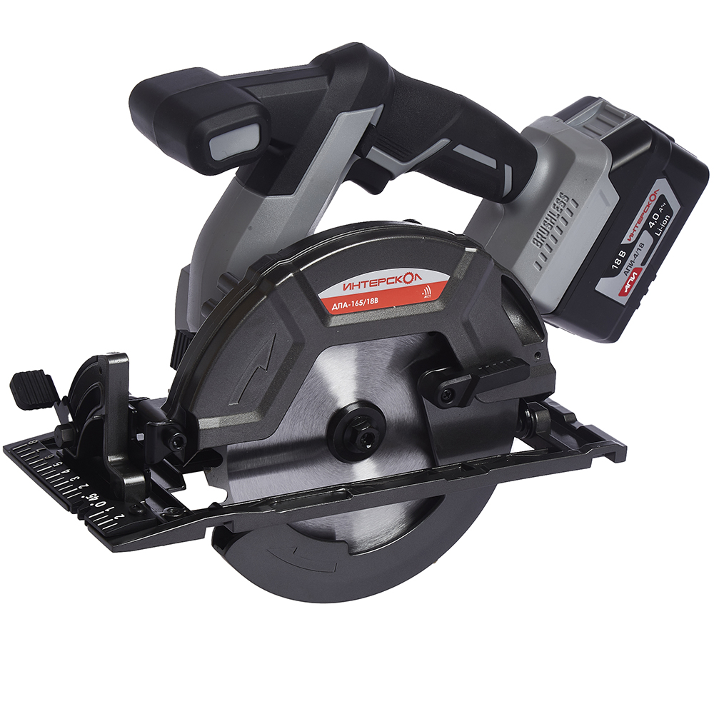 Профессиональная аккумуляторная дисковая пила Интерскол ДПА-165/18В предназначена для поперечного, продольного и комбинированного распиливания древесины, комбинированных материалов (фанера, ДСП, ОСП, и т.п.). Оснащена вентильным бесщеточным приводом и Li-ion слайдерным аккумуляторным блоком платформы АПИ. У этой модели двигатель находится с правой стороны от диска, что позволяет наблюдать линию реза при распиливании материалов. Все это повышает удобство использования и увеличивает качество результата.