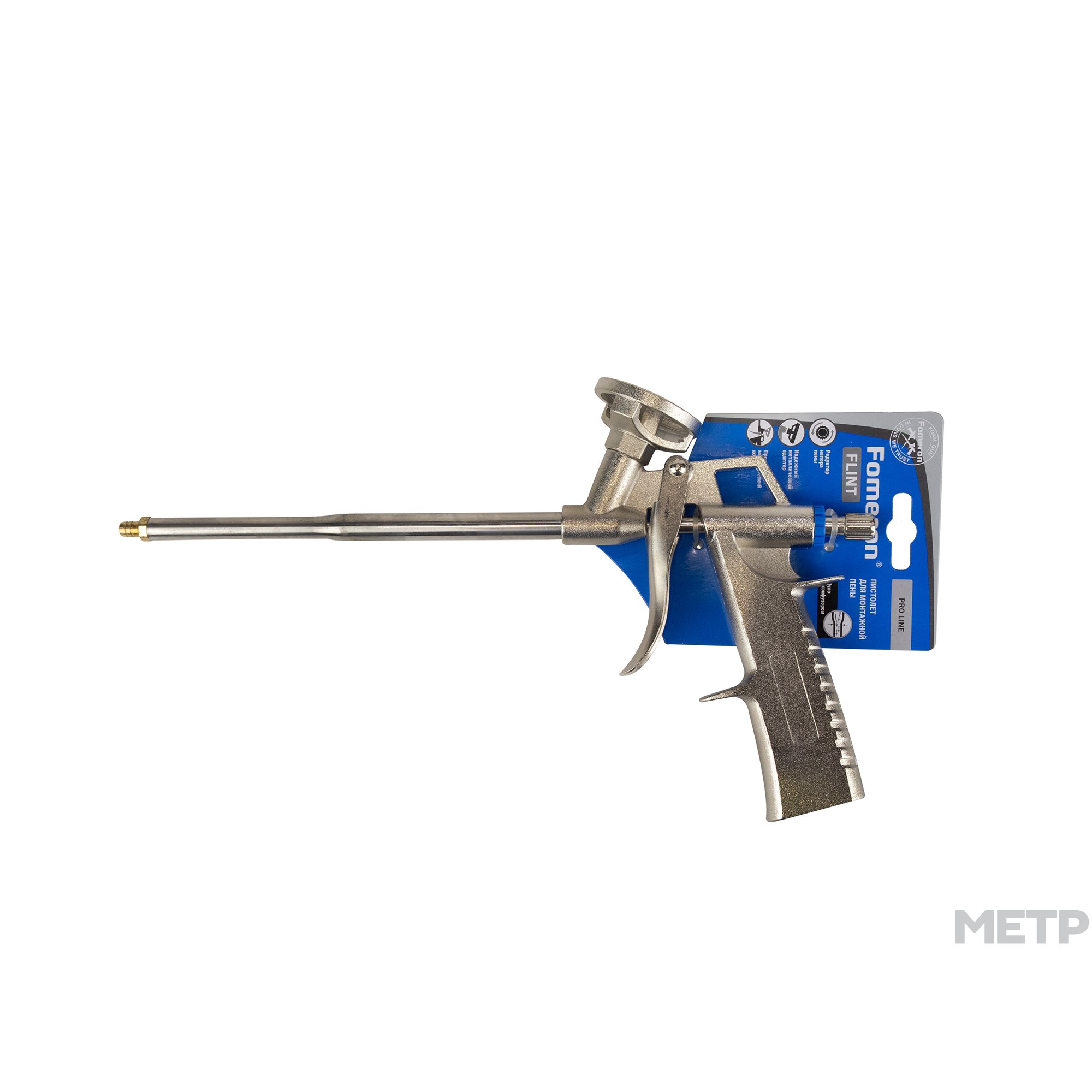 Пистолет для монтажной пены цельнометаллический Fomeron Flint используется при проведении монтажных и строительных работ с целью заполнения полостей, отверстий и трещин в материалах.При использовании инструмент обеспечивает увеличенный выход пены и уменьшает эффект расширения.Корпус изготовлен из стали, что гарантирует долгий срок эксплуатации и стойкость к коррозии.
