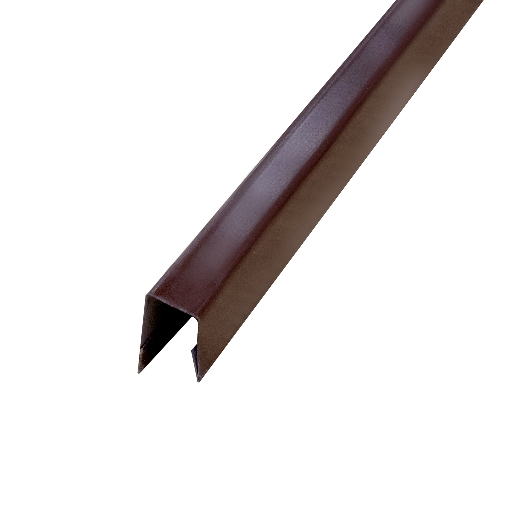 Планка П-образная МеталлПрофиль шоколадно-коричневый 8017 - предназначаена для выравнивания края кромки забора, выполненного из профнастила или евроштакетника, и придания ему правильной геометрической формы.