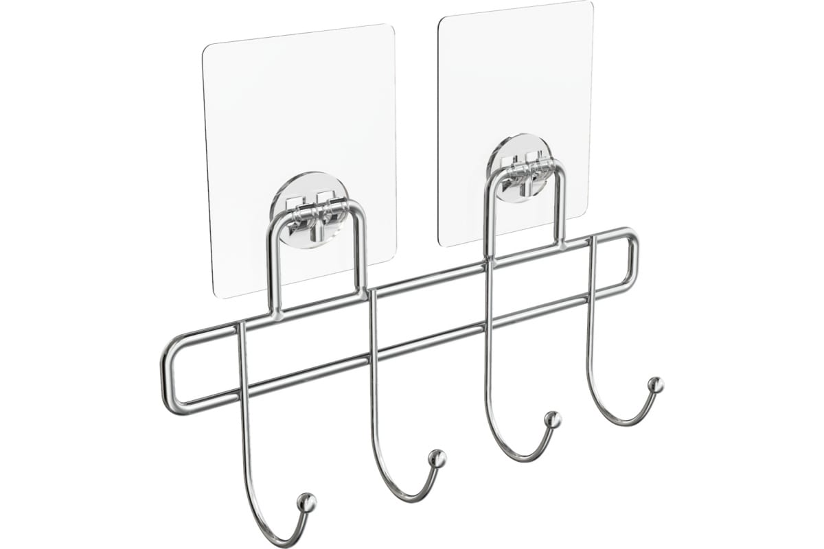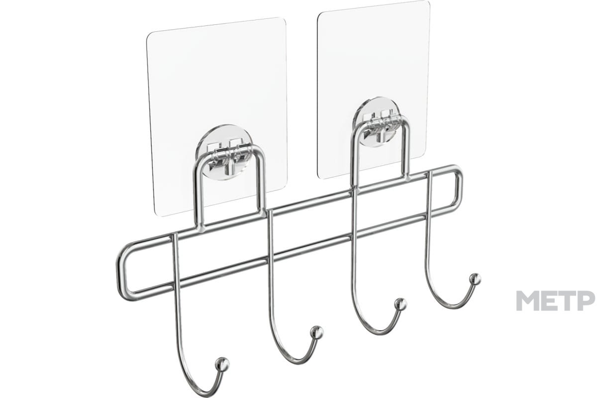 Чтобы зафиксировать ее на поверхности стены не надо делать отверстия. Просто уберите защитную пленку и плотно прижмите силиконовое основание в нужном месте. Хромированный металл, из которого сделан аксессуар, устойчив к коррозии, на нем не появится ржавчина. Планка с металлическими крючками – это стильно и удобно!