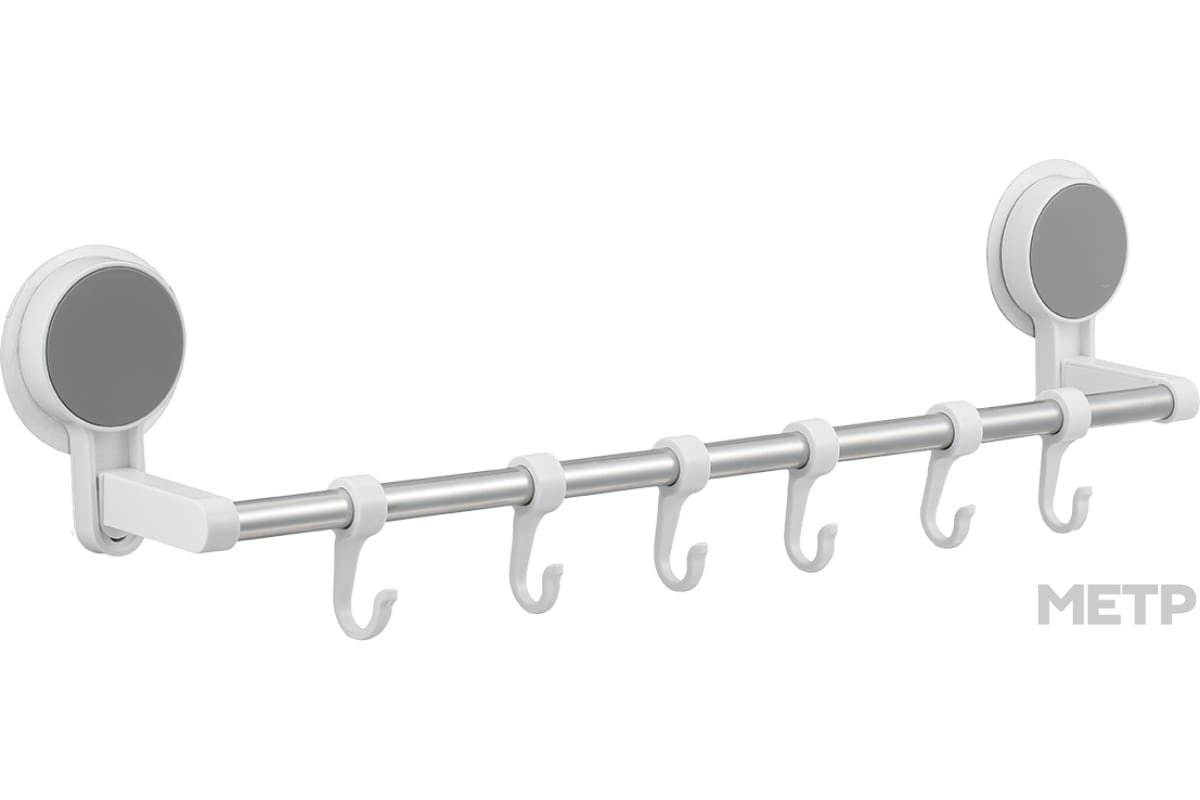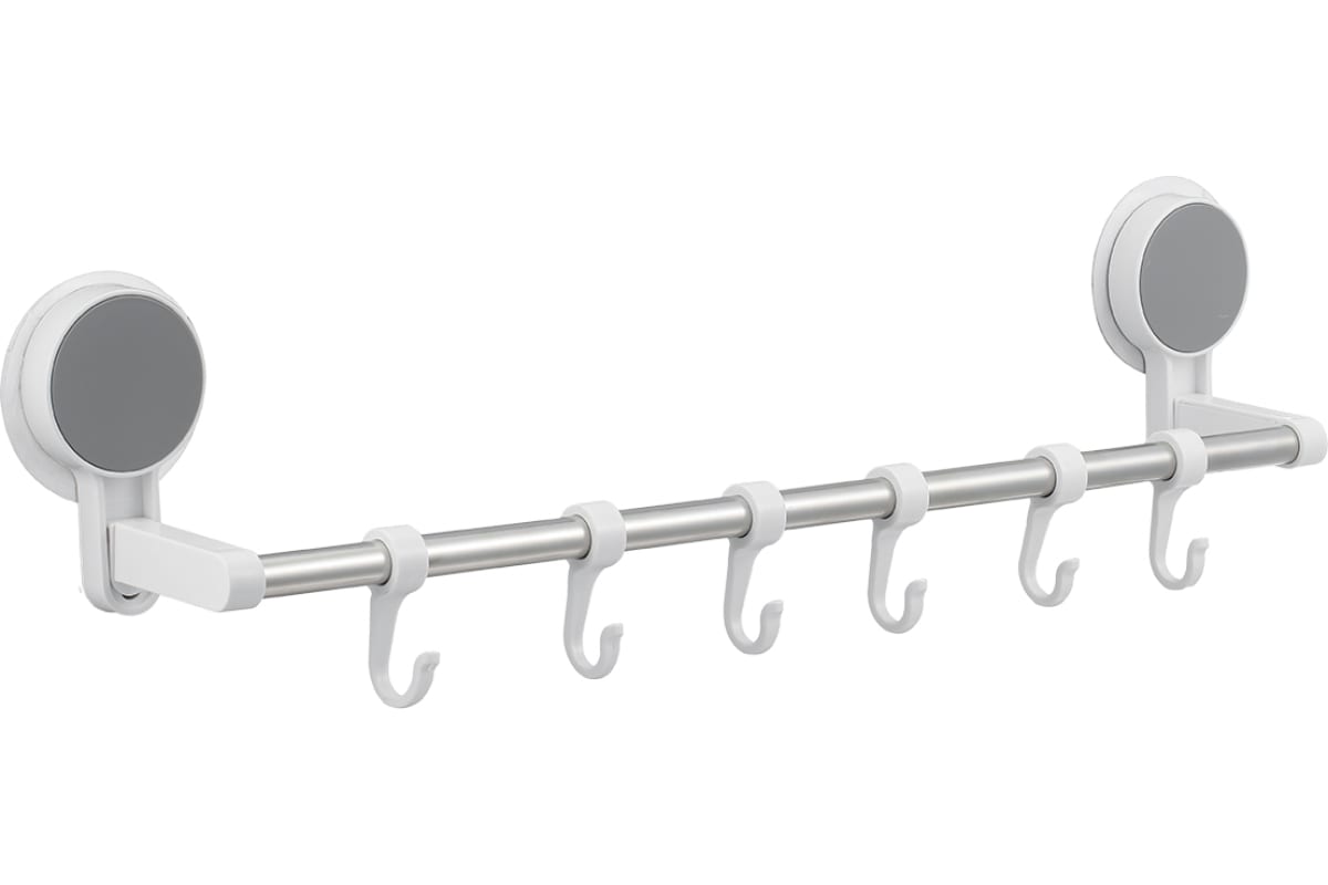 Крючки на планке 6 штук. Изготовлены из ABS-пластика и нержавеющей стали 201. Высокая устойчивость к коррозии. Монтируются к стене при помощи стикера.