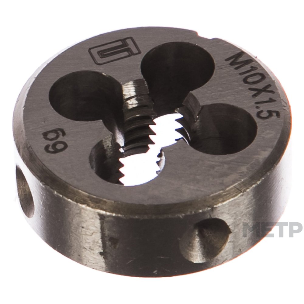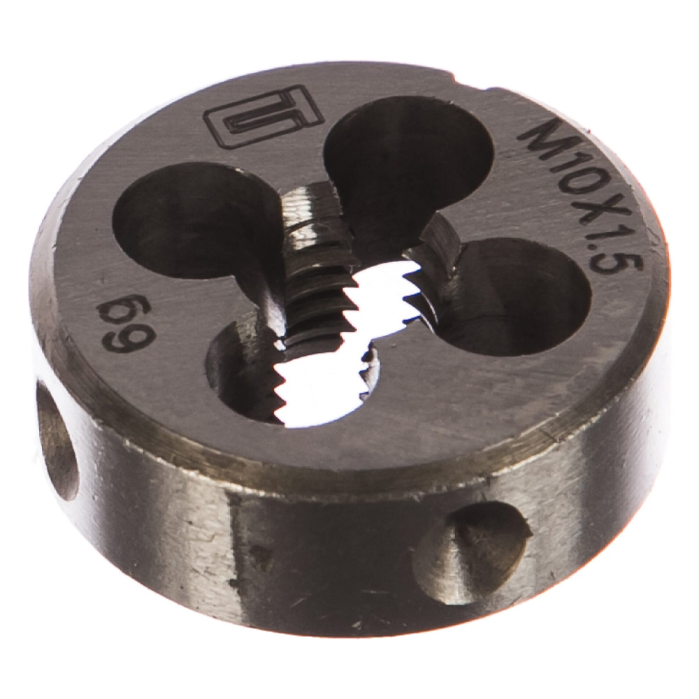Плашка М10 1,5 мм Сибртех. При реорганизации/капитальном ремонте водопроводных и отопительных систем частных домов может потребоваться замена труб. Установке новых элементов всегда предшествует их подгонка в соответствии с проектом, нарезание резьбы, для чего и применяется данный инструмент.