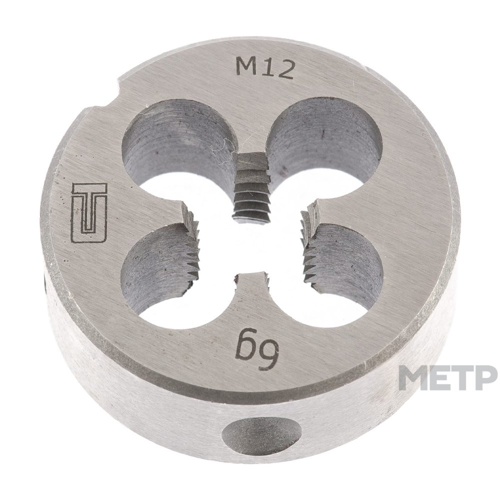 Плашка М12 1,75 мм Сибртех. Применение такого инструмента является классическим способом создания наружной резьбы труб. Изделие востребовано как среди профессиональных мастеров, так и у частников, при самостоятельном ремонте/организации домашних систем водопровода/отопления. Простая надежная конструкция.