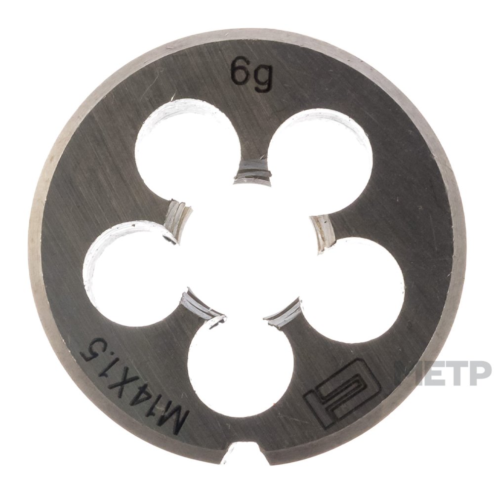 Плашка М14 1,5 мм Сибртех. Данный инструмент представляет собой неразборный корпус с помещенной внутрь резьбой, применяется для подготовки к монтажу водопроводных/отопительных труб. Незаменимое изделие при выполнении капитального обновления коммуникаций частных домов.