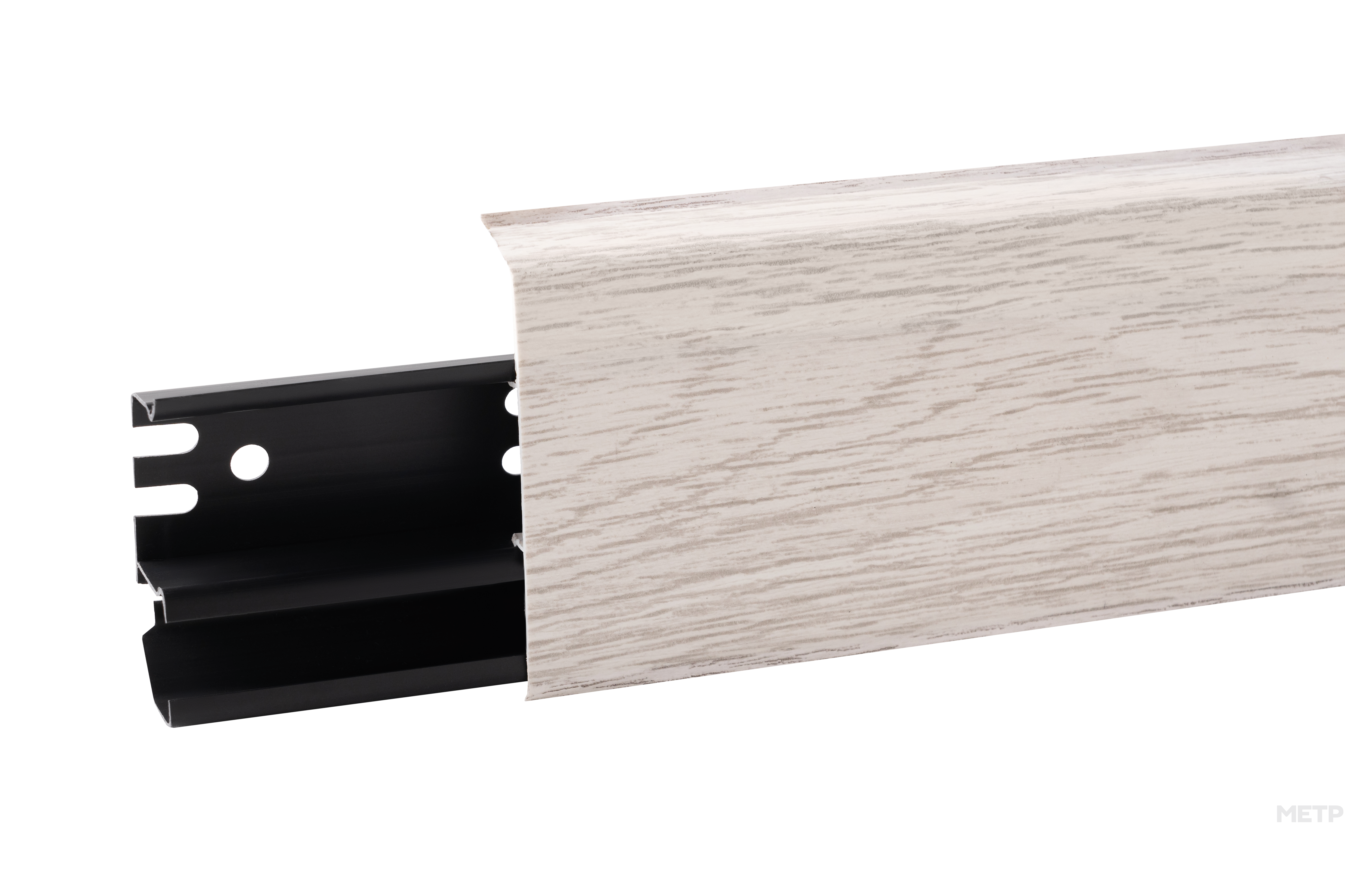 Плинтус ABF-70 Aberhof 70*26*2200 мм 7007 Каштан Жирона поможет не только завершить отделку, но и при необходимости спрятать провода в кабель-канал.