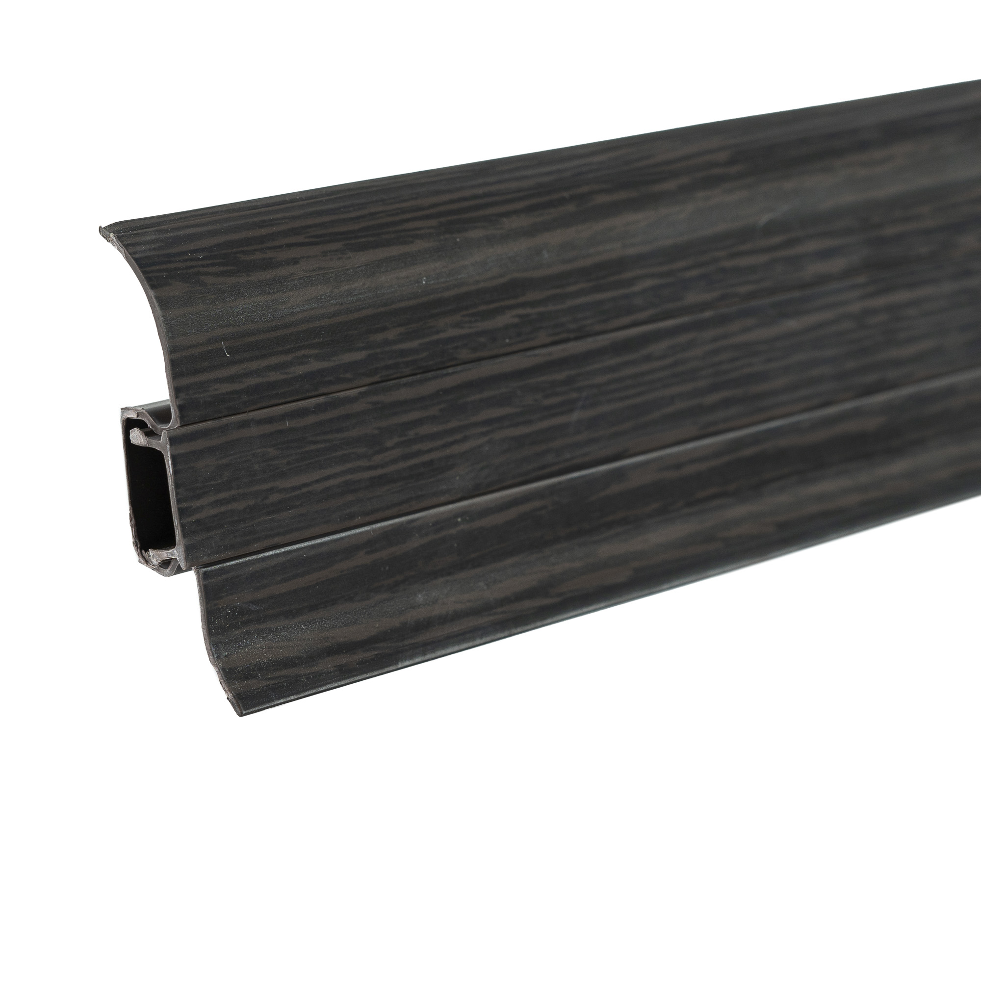 Линейка напольного плинтуса из ПВХ от компании Cezar представлена в широкой цветовой гамме и укомплектована всей необходимой фурнитурой для финишной отделки помещений. Плинтус из ПВХ со встроенным кабель-каналом состоит из основы и маскирующей планки, что позволяет монтировать его при помощи распорного дюбеля без монтажных клипс. При необходимости возможна прокладка кабеля под маскирующую планку. Мягкие уплотнительные края плинтуса существенно облегчают монтаж и позволяет качественно установить плинтус даже при наличии неровностей. Цветовая гамма, насчитывающая более 100 цветов, тщательно подобрана к современным декорам напольных покрытий, Вы без труда сможете подобрать нужный оттенок.