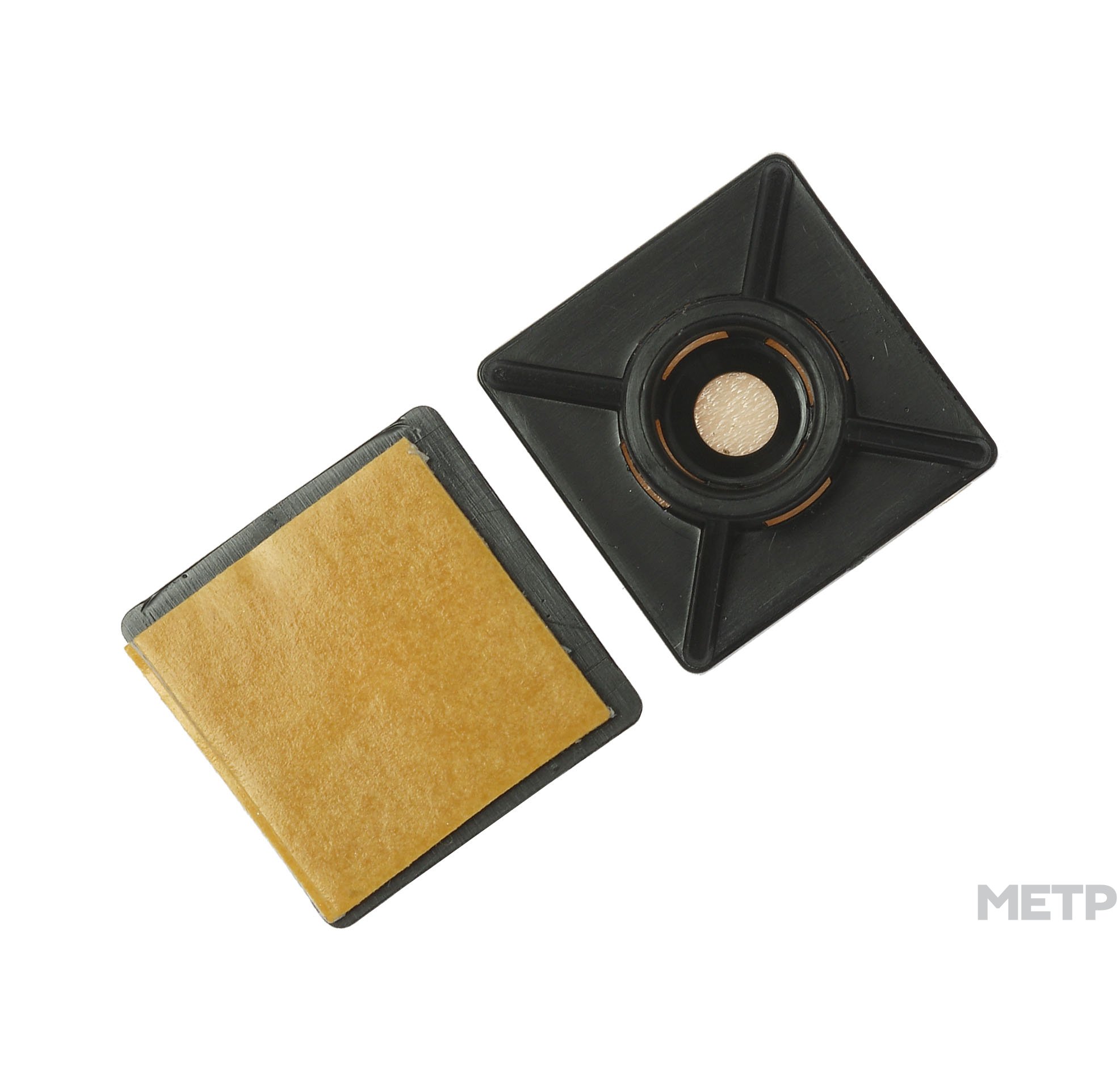 Площадка под хомут 27х27 мм 20 шт. черная применяется при производстве электромонтажных работ при необходимости проложить участок электрического кабеля по металлической или какой-либо другой гладкой поверхности, при этом эту поверхность нельзя или нежелательно сверлить. Кабель крепится к площадке нейлоновой стяжкой. Для того чтобы сделать данное крепление более надежным, увеличить несущую способность площадки, необходимо воспользоваться саморезом, для которого в центре площадки имеется специальное отверстие.